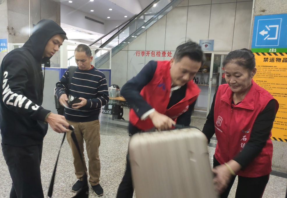 草埔西社区党委组织社区25名党员义工到深圳银湖汽车站,草埔西社区党委书记邓新锋和义工一起参加活动,展现并发扬深圳义工"奉献、友爱、互助、进步的义工精神,为返乡旅客提供指引、搬行李、送温暖等服务,特别是对老弱病残等特殊人群服务,忙忙碌碌行走在返乡人群中,受到返乡旅客的赞扬,展现深圳义工靓丽风彩。