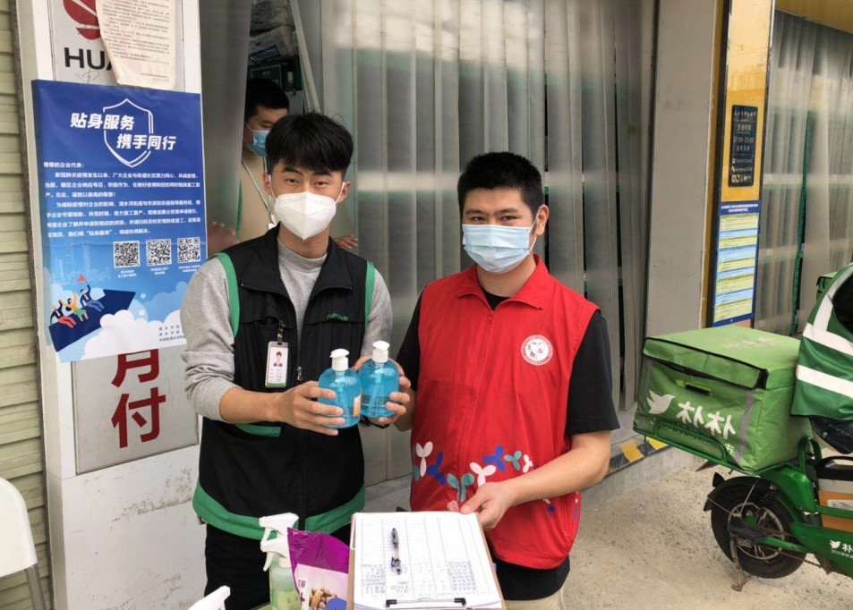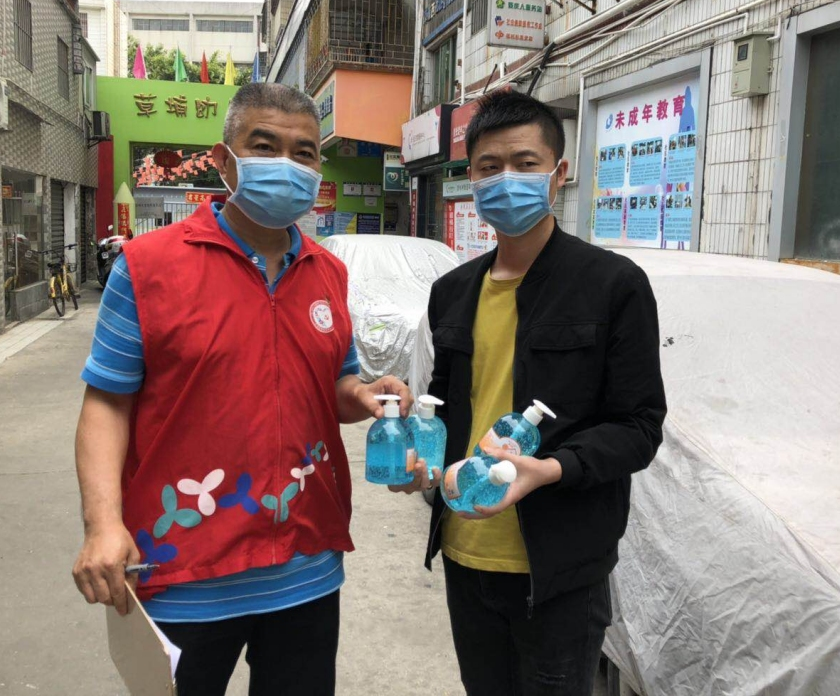 疫情防控期间,草埔西社区党群服务中心给各个卡点以及社区内超市派发免洗洗手液