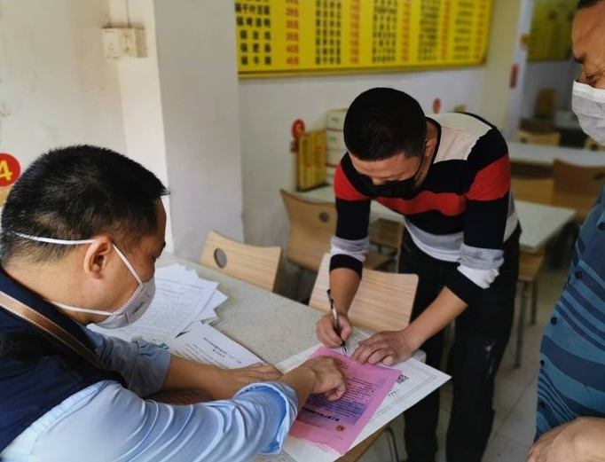 草埔西社区安全专干、网格员共3人到复工的三小场所安全检查,签订疫情防控承诺书、责任状、消防安全承诺书、送达复工告知书共6份,同时提醒店铺老板要加强消防安全自查自检,劝导顾客戴口罩,全力配合社区督导工作,共克时艰,共同打赢这场防疫阻击战。