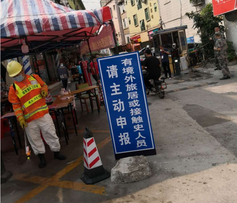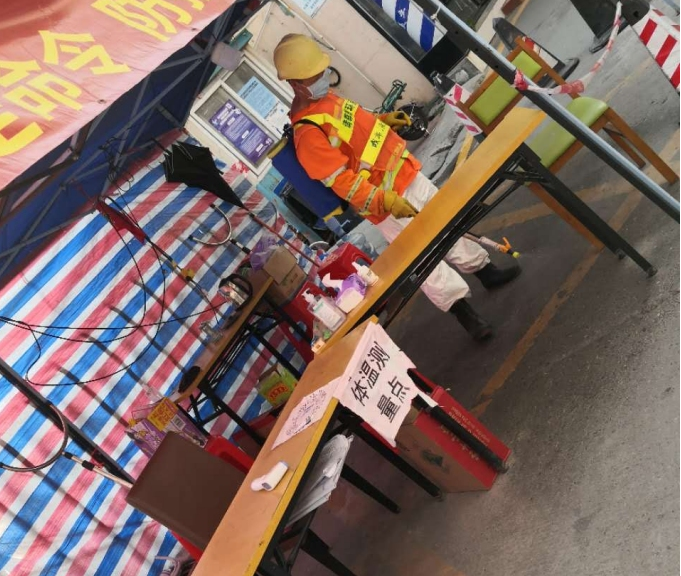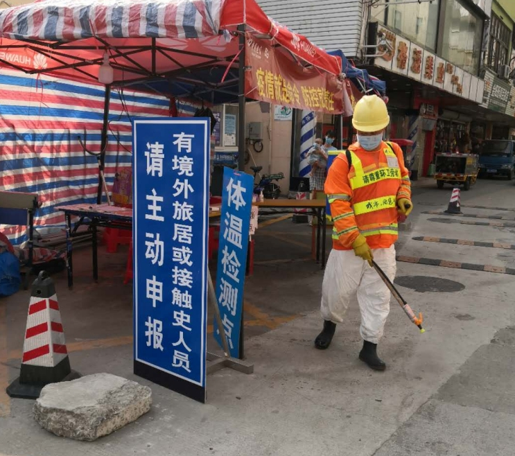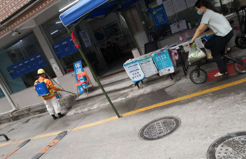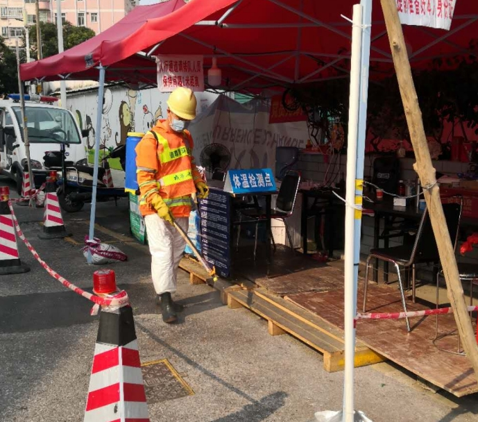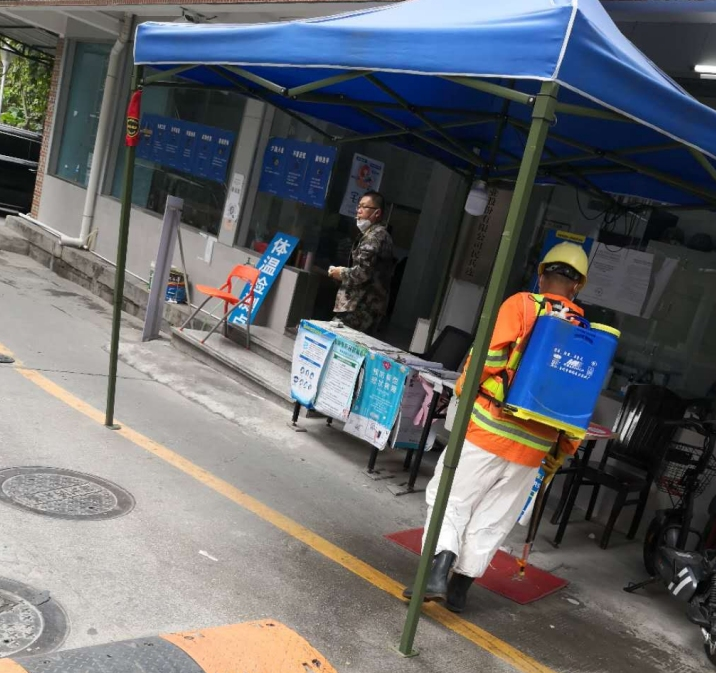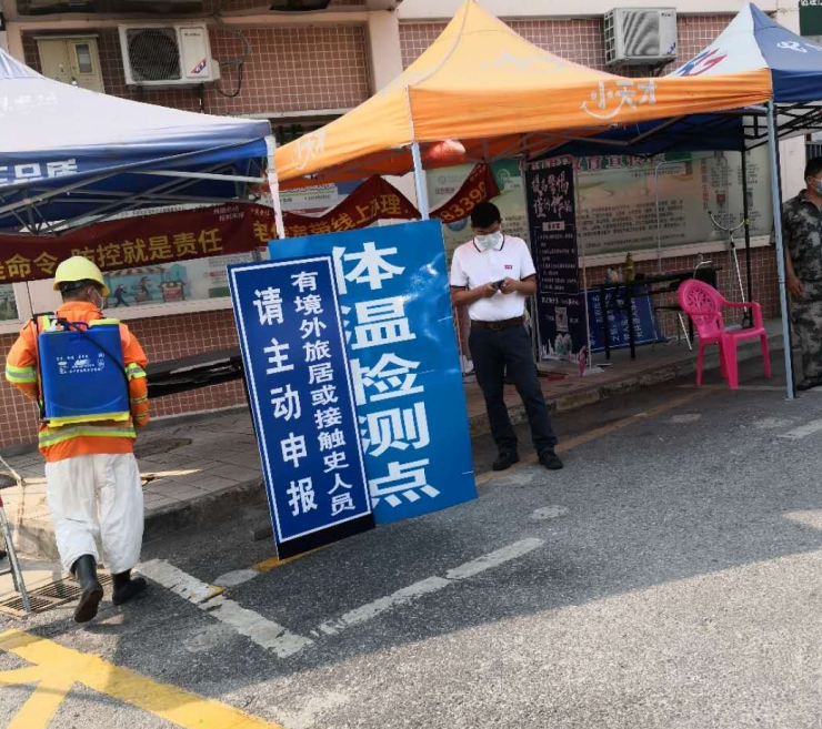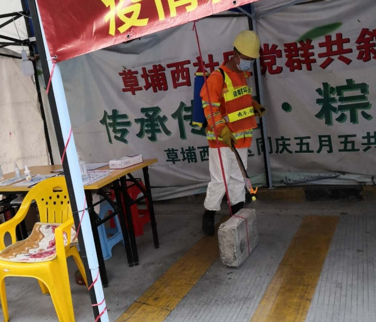 草埔西社区对体温检测点每日进行消毒