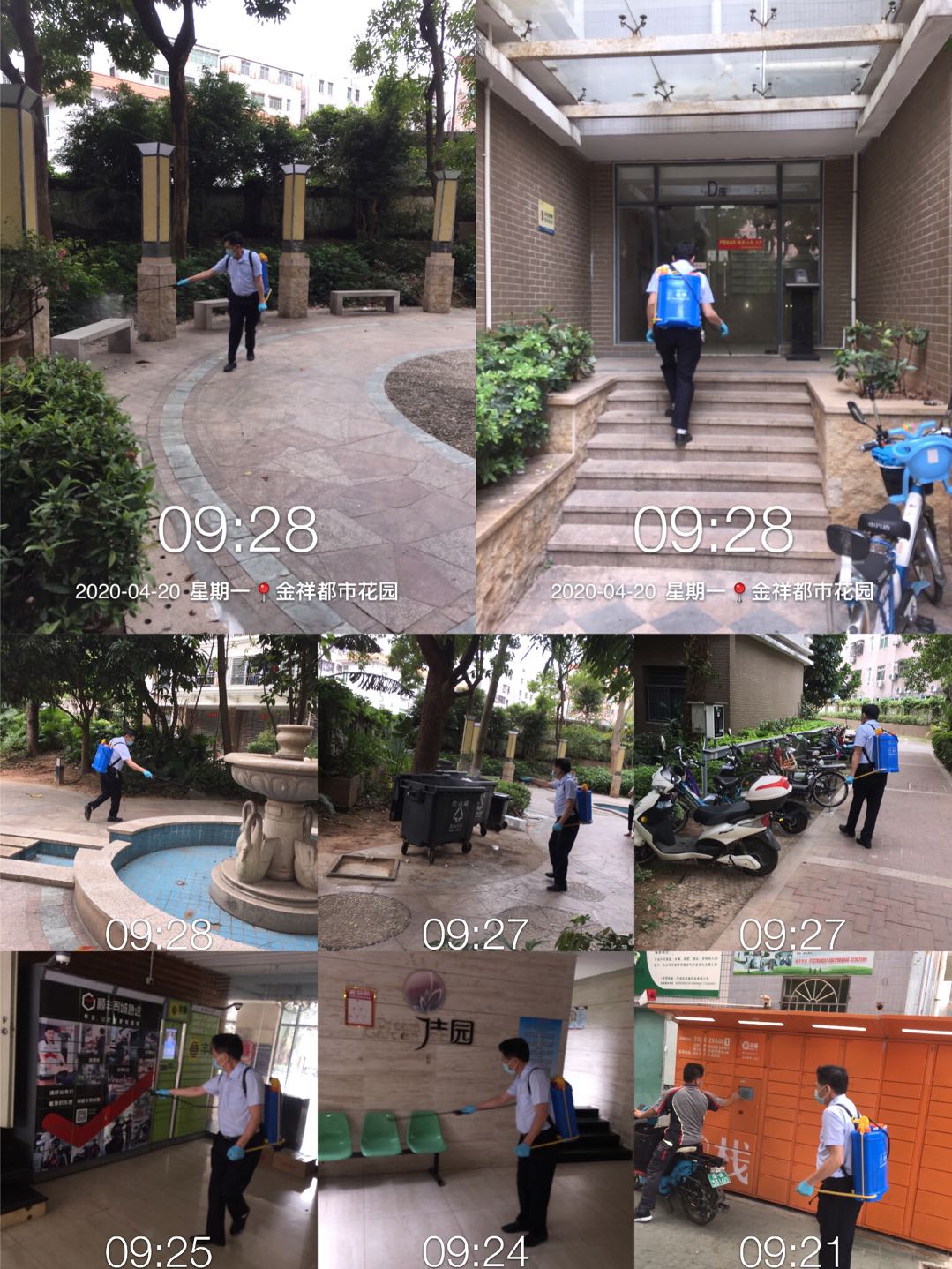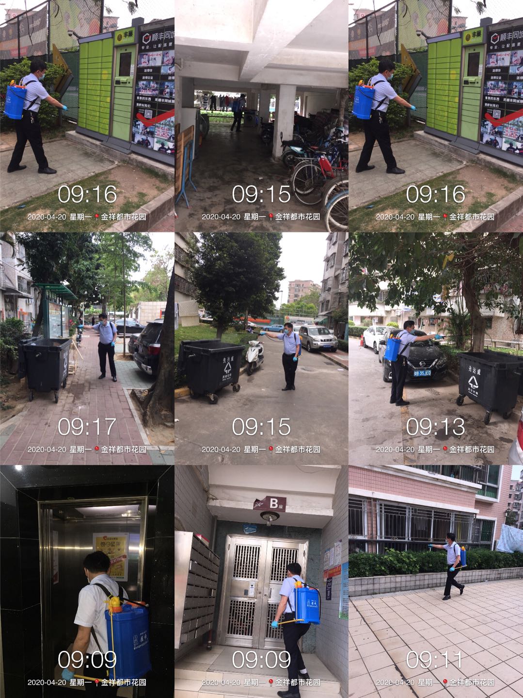 2020年4月20日草埔西社区金祥都市花园小区物业安排工作人员对小区
