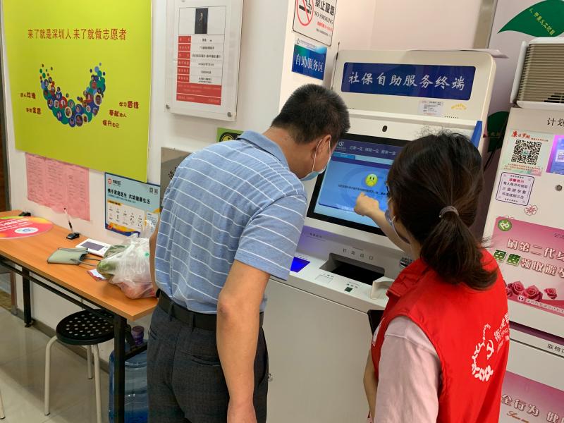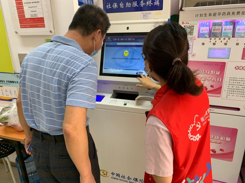 昨日,住在鹤围村的居民为小孩子上学而前来社区工作站打印社保参保证明和社保清单业务,中途出现了疑惑,社区工作人员解答道根据自助机提醒进行下一步,随后居民需要的业务已办理成功。