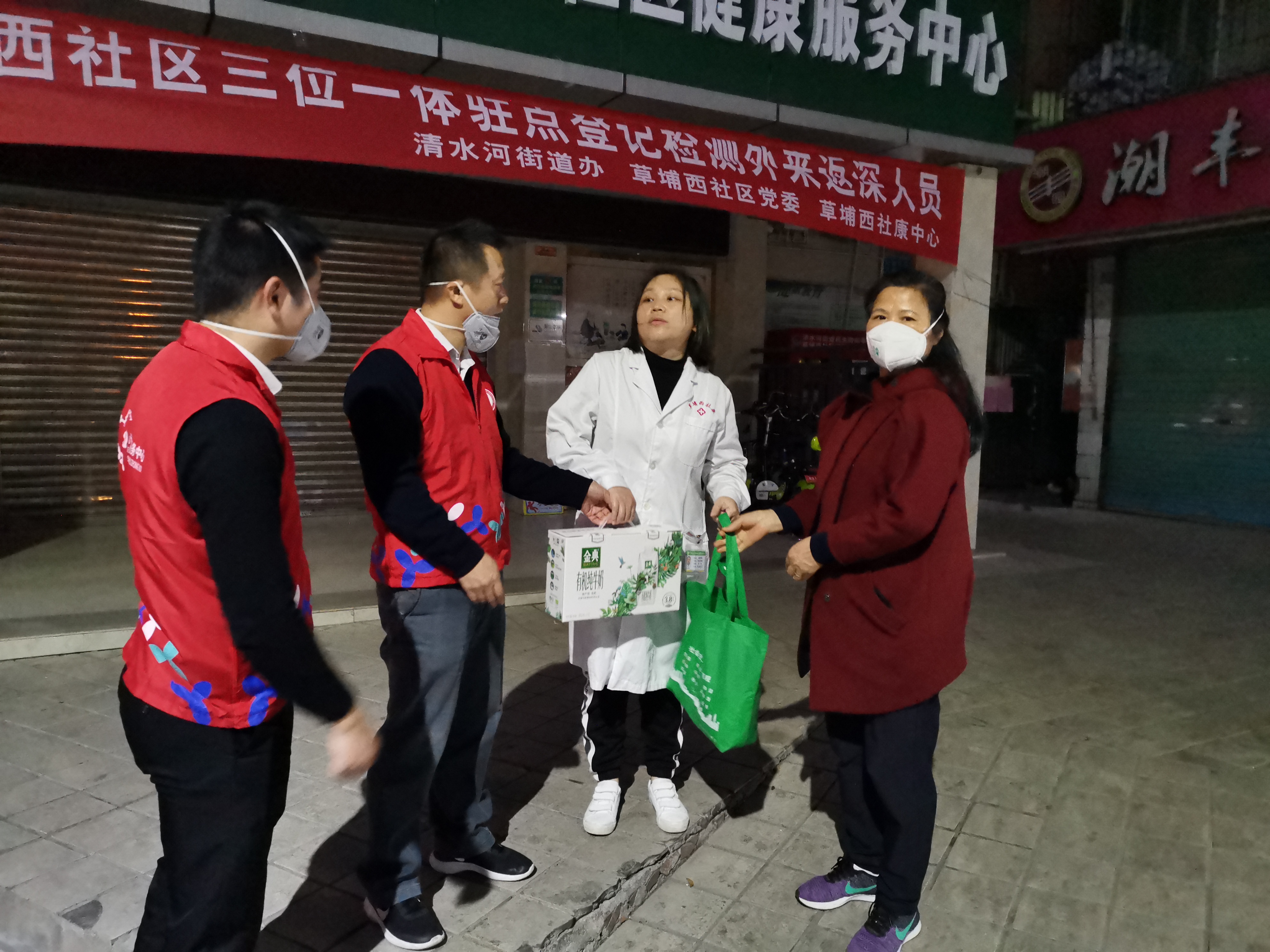 草埔西社区党委给社康发放慰问品