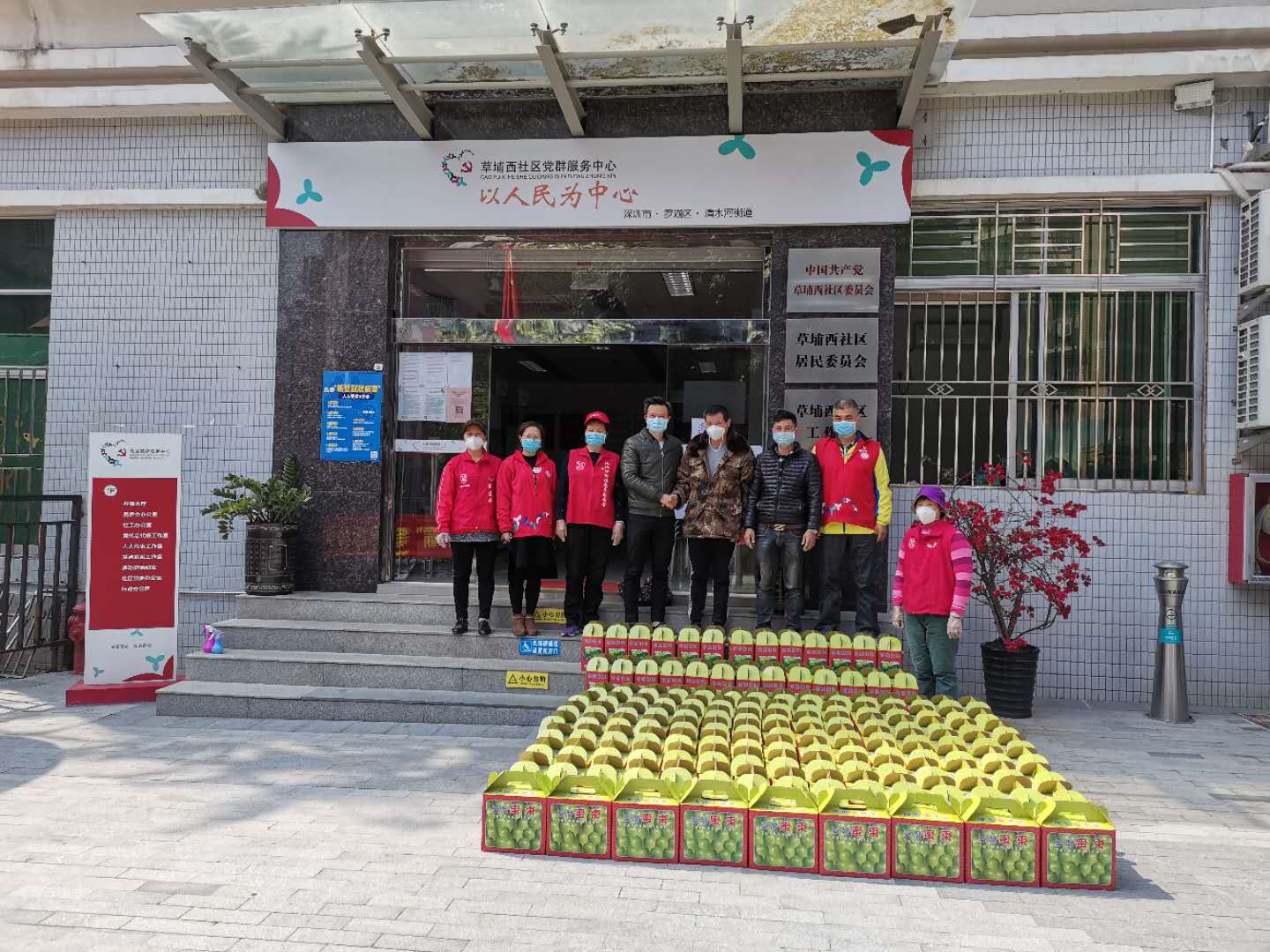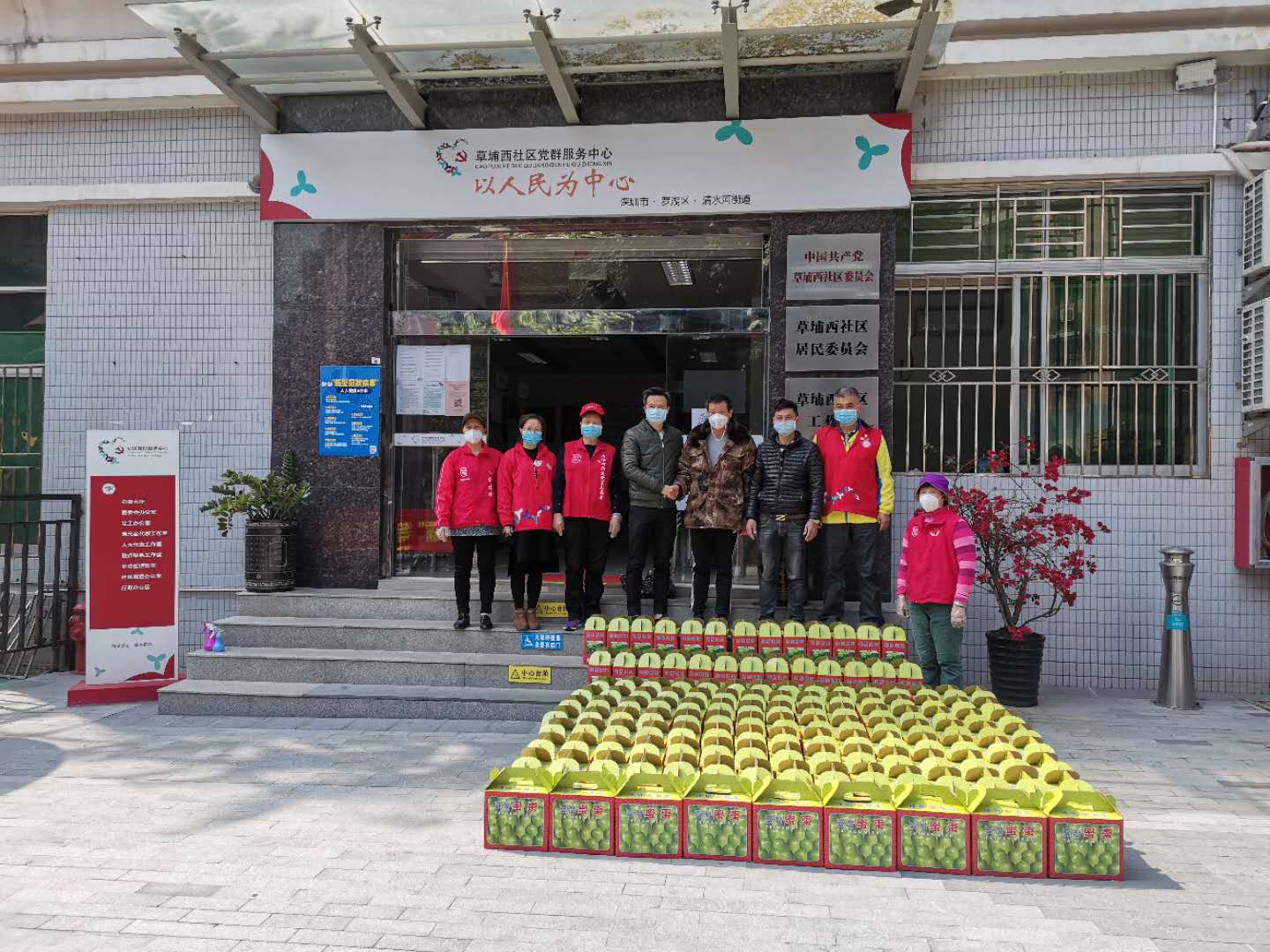 近日,清水河村民梁雪云有感于草埔西社区党委、区下沉干部、股份公司全体人员、党员群众、义工为社区防控疫情的劳动付出,为所有基层一线工作人员赠送一箱水果,为草埔西社区的疫情防控工作点赞。
