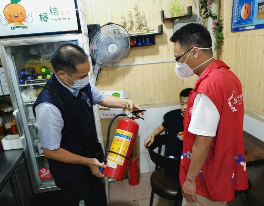 按照街道统一部署,4月28日晚,草埔西社区党委副书记组织社区工作人员持续开展安全错时夜查专项行动,当晚主要检查清水河商业街66-83号铺共计三小场所18家,发现灭火器材被遮挡,灭火器压力偏高(黄色)等隐患共6项,现场整改完毕4项,限期更换灭火器材2项,其他暂无发现异常。检查过程中同时抽查店铺经营者能对正确使用灭火器材的知识掌握度,社区工作人员反复强调和提醒店铺老板打烊时关好电源和燃气阀门,确保安全后才离开。