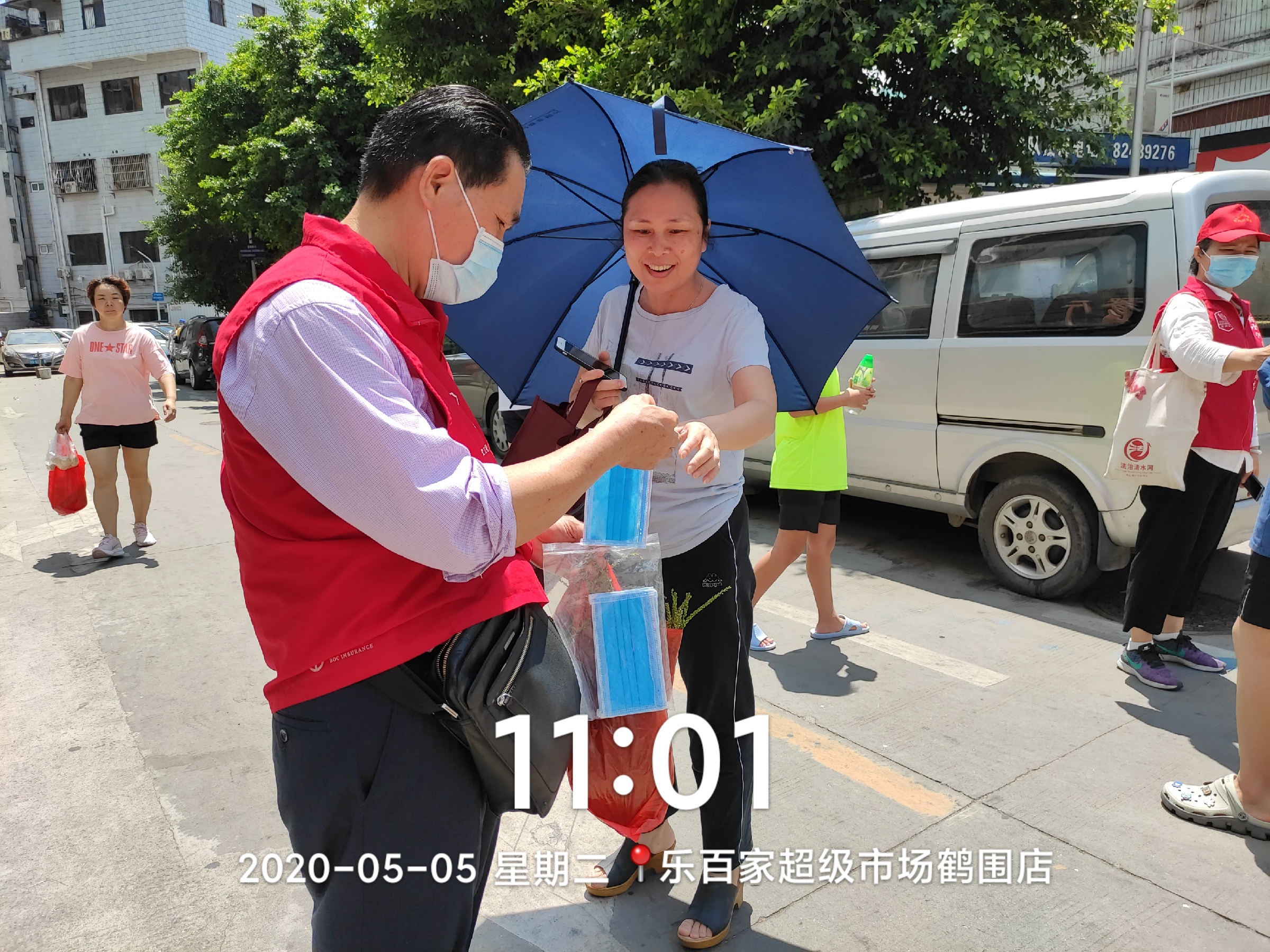 草埔西社区友爱互助义工队梁队长五一长假期间不休息,带领义工伙伴们在社区巡查劝导居民出门戴口罩,做好疫情防控宣传。当看到有的居民出门忘记戴口罩,拿出自己防备的口罩送给居民。