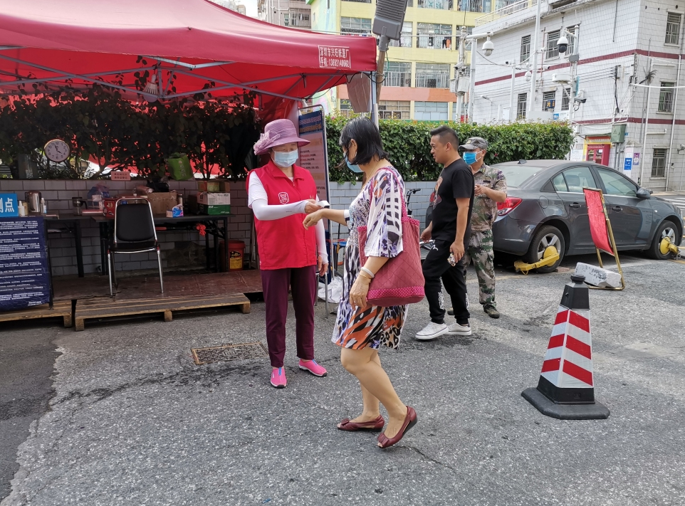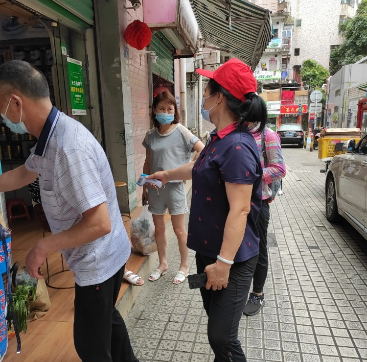 炎炎夏日,草埔西社区党委、区派干部、义工队持续开展社区防疫巡查工作,巡查队分别协助辖区各体温检测点开展体温检测工作,沿街巡查整改“脱口罩”现象,提醒居民朋友做好自我保护。