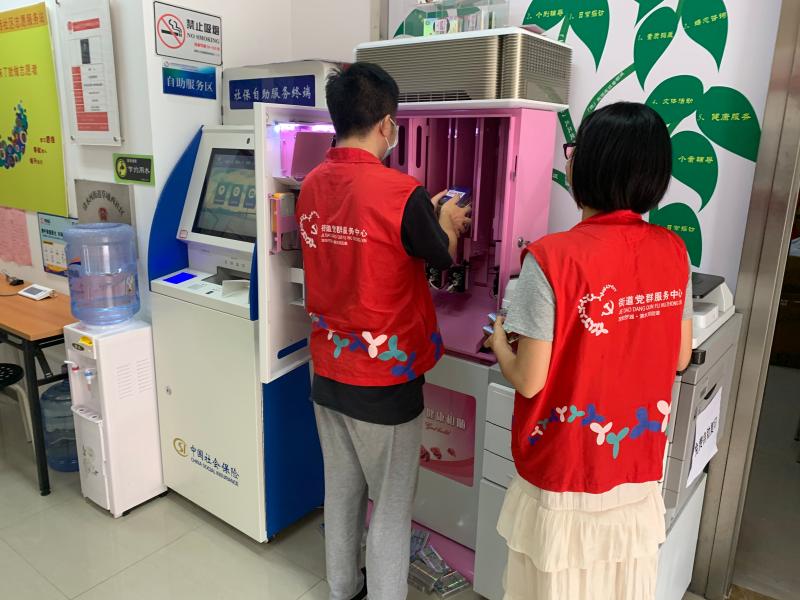 2020年5月20日上午,随着小孩上学报名时间的来临草埔西社区工作人员在发放机补充计划生育免费药具,为办事的居民有所了解领取。
