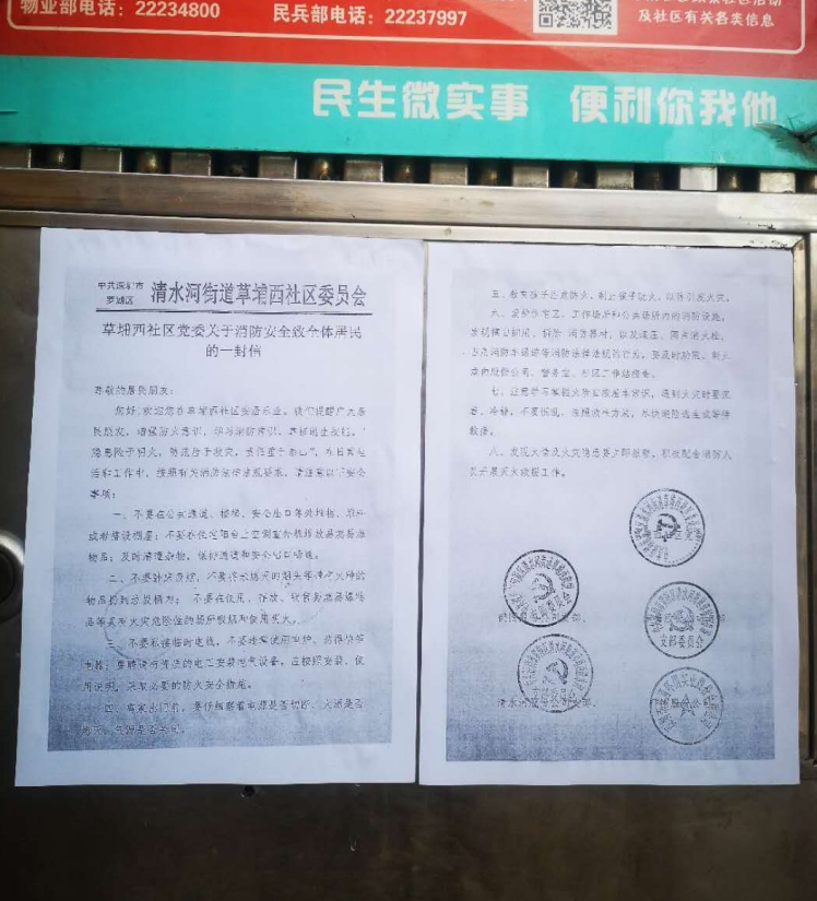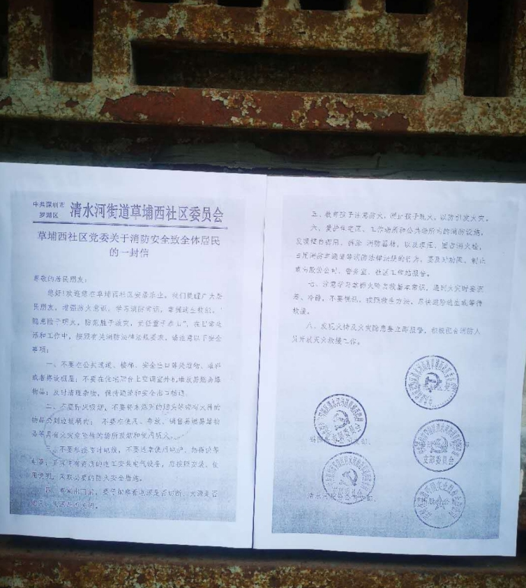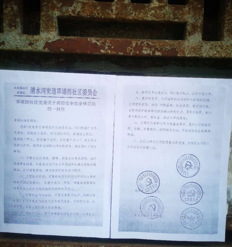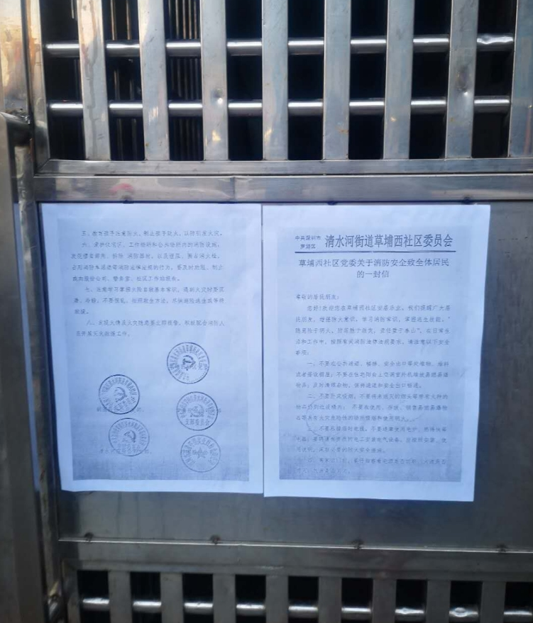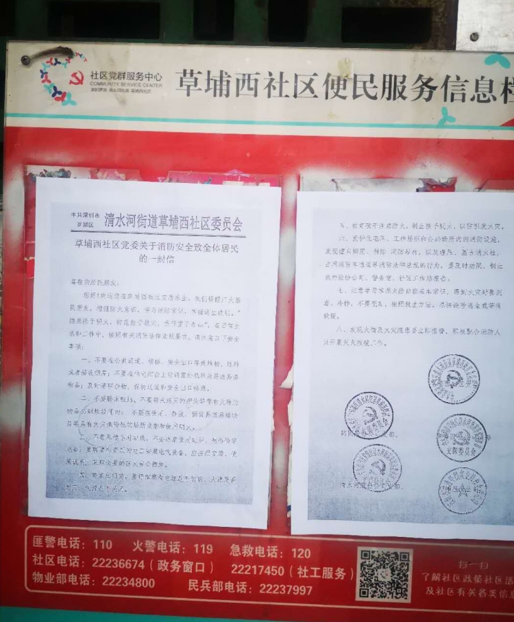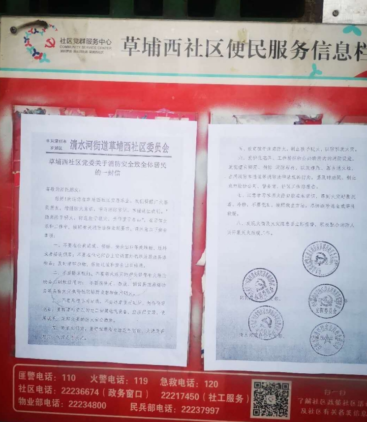 安全社区--全民共建《草埔西社区党委关于消防安全致全体居民的一封信