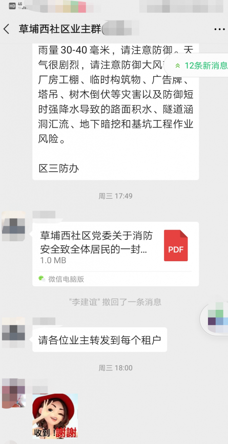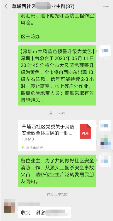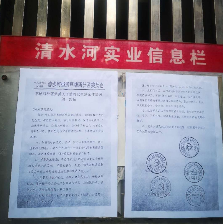 为凝聚全民共建安全社区力量,向全体居民介绍安全防范生活常识,草埔西社区党委联合鹤围股份公司、章輋股份公司、清水河股份公司、吓围股份公司组织安排工作人员,结合线上线下宣传的方式,宣传《草埔西社区党委关于消防安全致全体居民的一封信》。