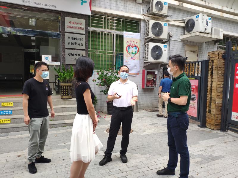 6月9日下午,清水河街道党工委书记王华生走访草埔西社区检查工作,清水河街道办事处副主任刘思源陪同。