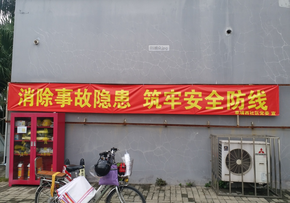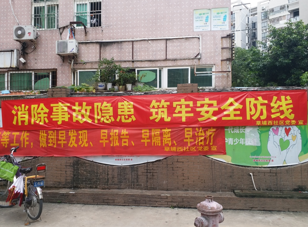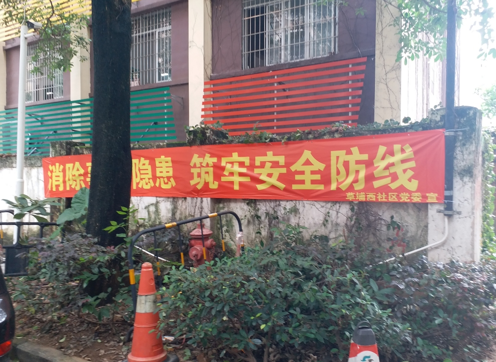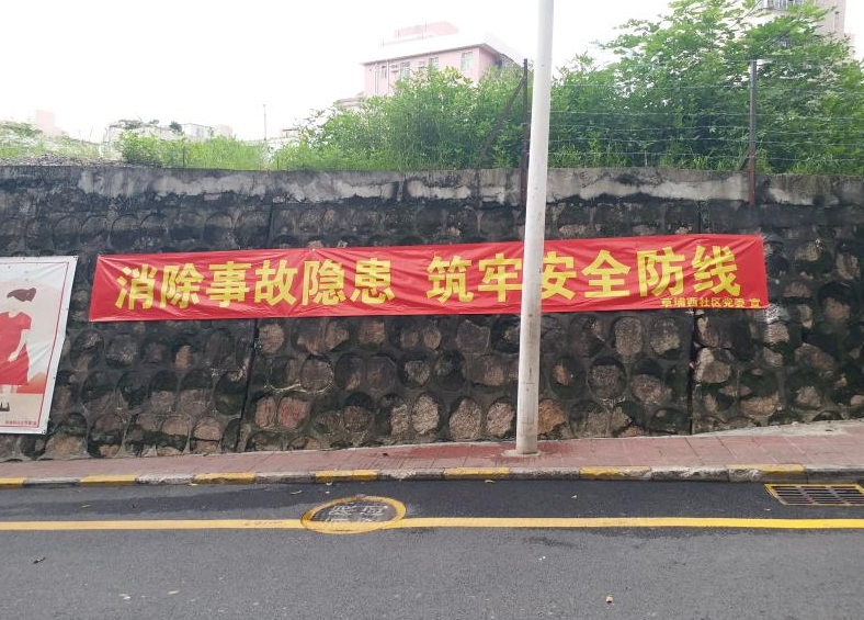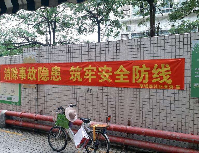 按照上级安排部署,围绕全国安全生产月主题宣传内容,草埔西社区党委联合小区、城中村物业在辖区内各条人流量较大的主要路段悬挂“消除事故隐患,筑牢安全防线”宣传横幅,旨为提高居民共建安全社区意识,提醒大家时刻保持警惕,防范安全事故发生。