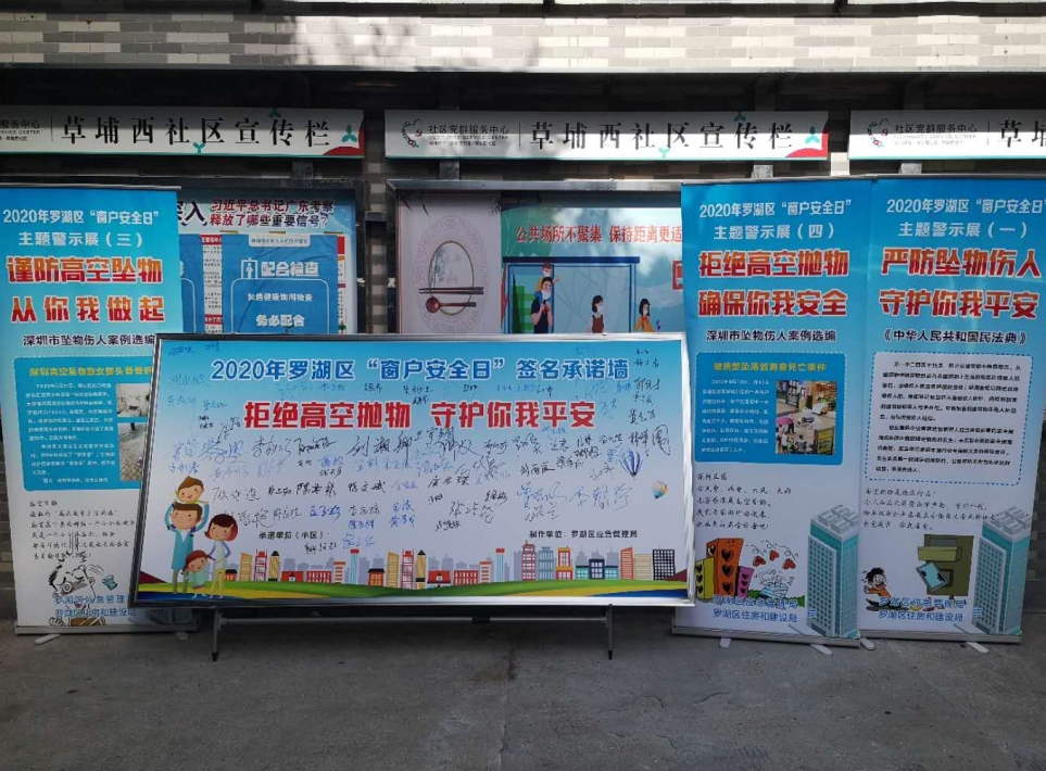 为加强楼栋阳台、窗户及附着物等隐患排查及整改,切实减少和遏制坠物伤人事件发生,按照街道统一部署,2020年7月22日下午,草埔西社区继续在鹤围村开展2020年“窗户安全日”宣传活动,本次活动主题为“严防坠物伤人 守护你我平安”,共出动10人,悬挂横幅1条,签名展板1个,展架4个,派发宣传海报及倡议书等宣传资料300余份,有效提高辖区居民群众安全意识,营造严防坠物伤人,守护你我平安,拒绝高空抛物的良好氛围。
