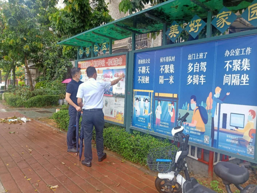 8月11日上午,草埔西社区党委书记邓新锋会同金祥都市花园管理处主任祝显兵检查金祥都市花园安全以及创建文明城市开展工作,主要巡查小区内边坡,叮嘱正在施工的作业做好安全防范工作,对不规范张贴及张贴掉落的宣传广告进行现场整改,此外,邓书记督促管理处做好汛期安全防范以及创文工作。