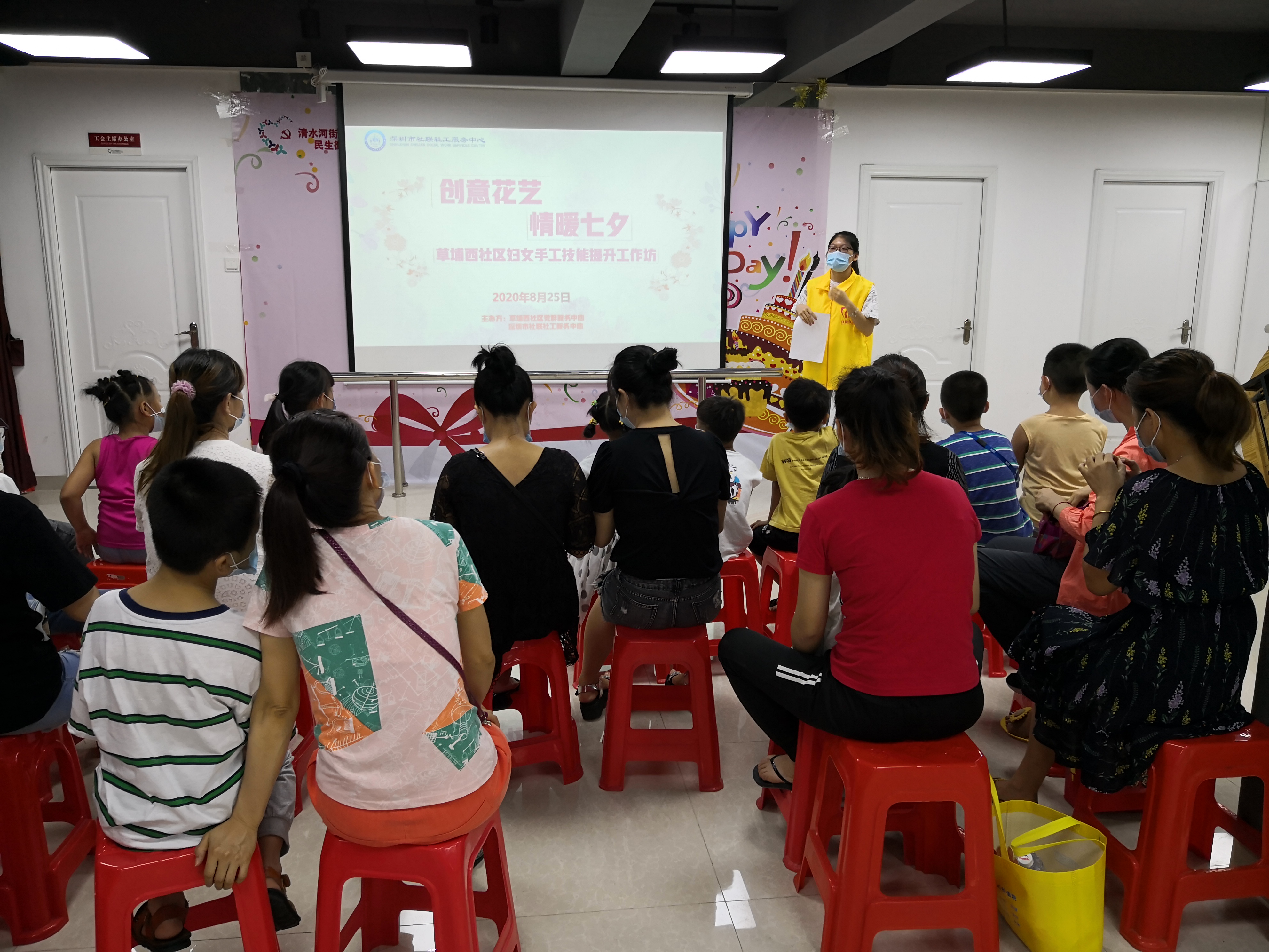 花,在人们看来是美的化身,在不同的场合,有不同的寓意,8月25日下午,草埔西社区党群服务中心开展“创意花艺·情暖七夕”——社区妇女手工技能提升工作坊,在社区3楼活动室如期举行。本次活动恰逢中国传统节日——七夕节,参加本次活动的妇女多为单职工家庭,很多妈妈带着孩子一起来参加活动。