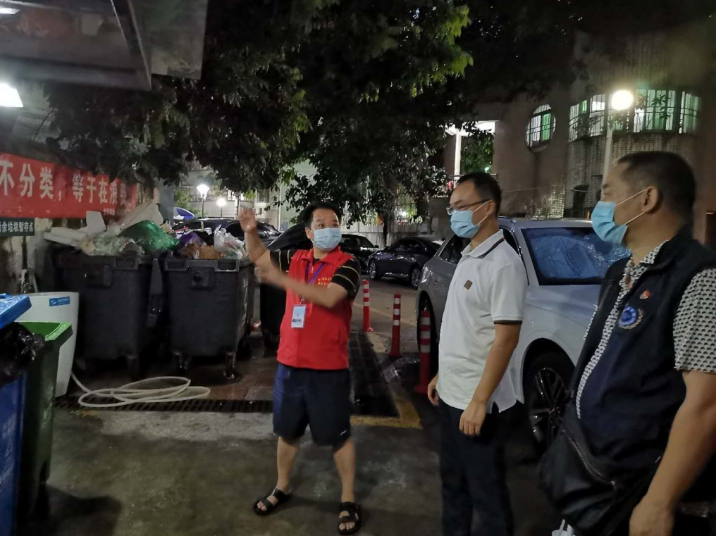 按照街道统一部署,2020年8月24日晚,清水河街道办事处副主任、草埔西社区第一书记戴雁同志在社区安全专干、网格员的陪同下开展创文、疫情防控和安全错时夜查专项检查指导,戴主任首先来到金祥都市花园察看了几处垃圾分类点,仔细听取了督导员是如何指引小区居民做好垃圾分类工作的,并提出了一些针对性的建议,接着又马不停蹄地前往樟輋村检查了宾馆,餐饮门店和充电桩的安全隐患,检查了消防设备,对消防应急点前堆放杂物和停放电动车立即清理。最后还到村里几个疫情防控测量点了解社区防控情况,戴主任强调当前虽然疫情方面有所好转但仍然不能掉以轻心,要严防死守,特别对拖着大件行李箱从外地进来的重点人群要坚持填写人员信息登记表,及时准确掌握人员动态。