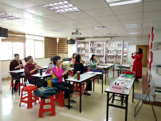 在课堂上,学员们满怀兴致,以演奏的姿态跟随老师练习曲目,在悉心的学习下,一曲动听的《莲山春早》飘扬在社区的活动室,悦耳动听。