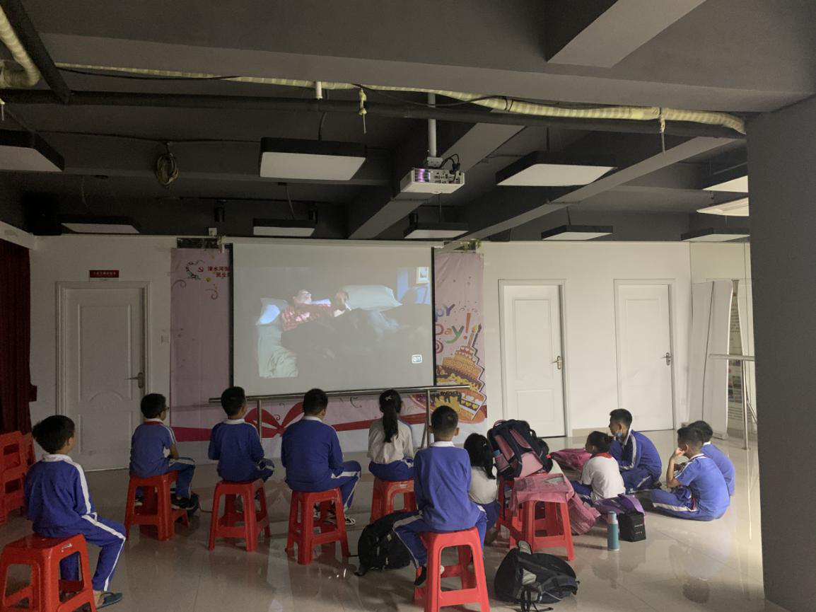 2020年11月20日下午,草埔西社区的儿童青少年汇聚草埔西社区活动室,慢慢欣赏影片《加菲猫》。