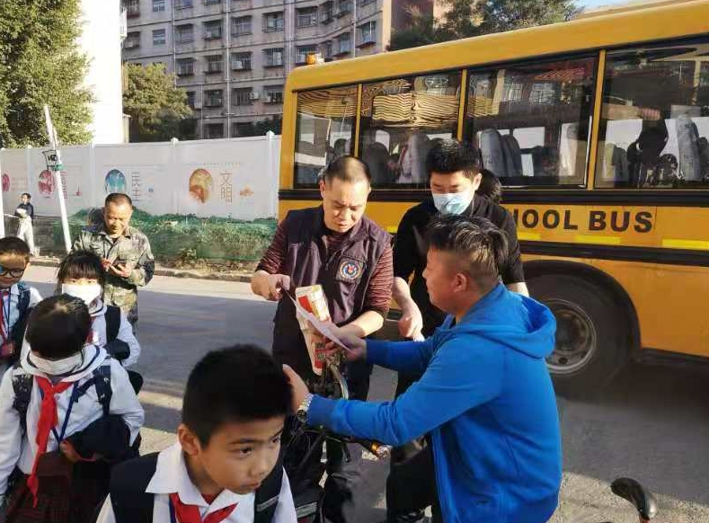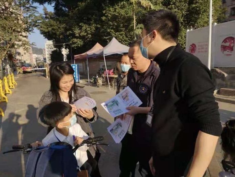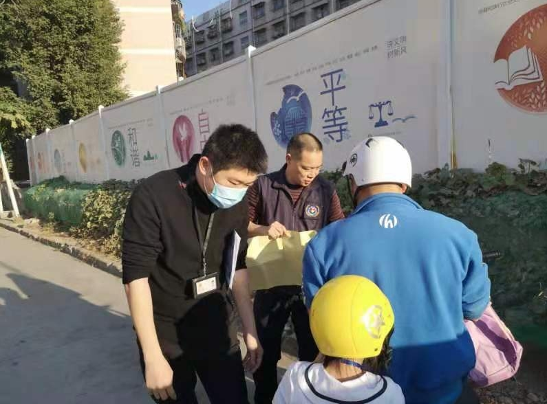 为减少电动自行车安全事故发生,加强电动车安全管理,确保辖区居民安全出行,2020年12月28日下午,草埔西社区安全专干联合街道交安办工作人员、股份公司民兵在鹤围村新华外国语学校门口针对放学高峰时段向家长、小学生派发道路交通安全宣传资料,共出动5人次,派发《戴头盔 戴口罩;文明交通 安全出行》宣传单张130份。