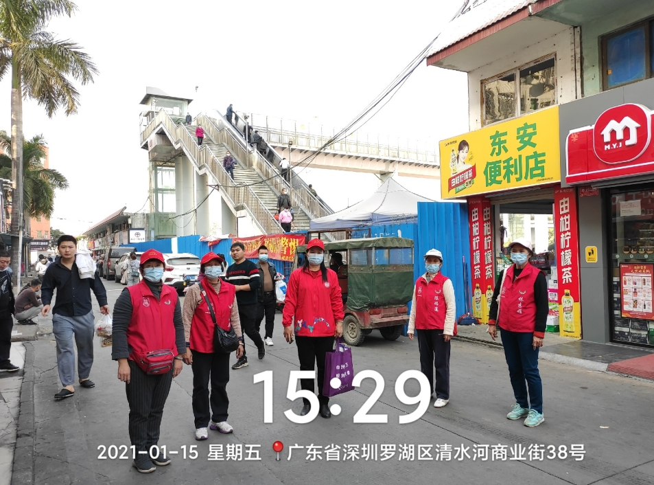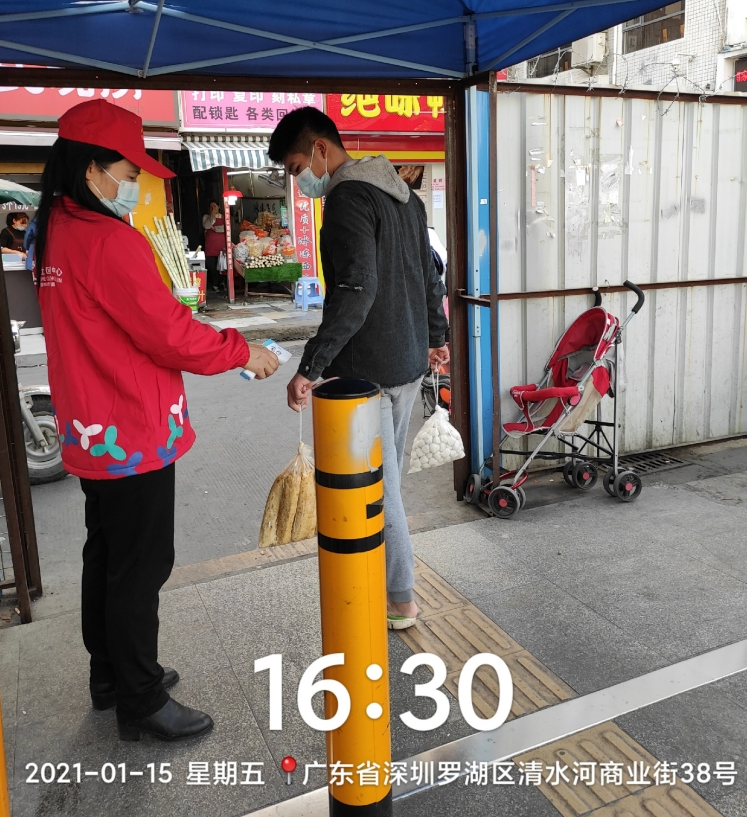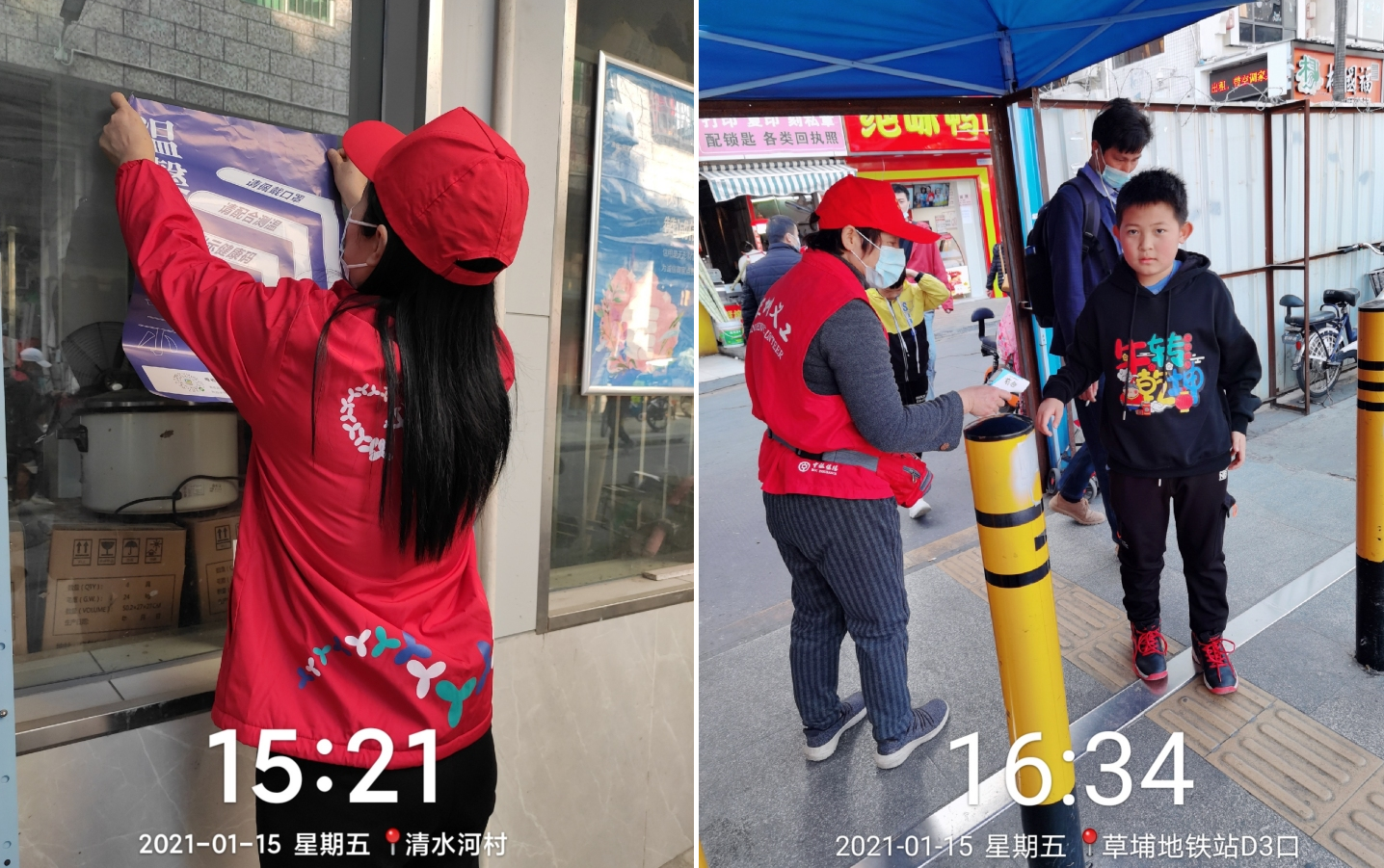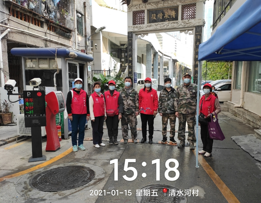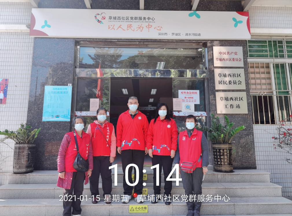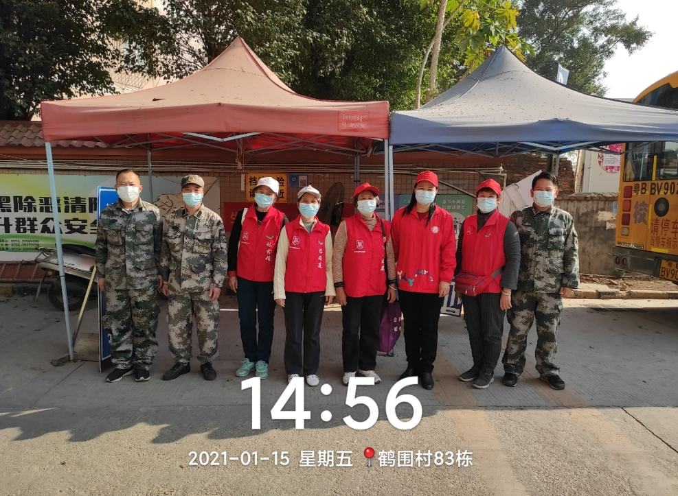 2021年1月15日草埔西社区老人协会志愿者们,积极参与到社区的防疫工作中,在社区卡点值守,进行体温测量,并在社区巡查进行疫情张贴防控防疫宣传。
