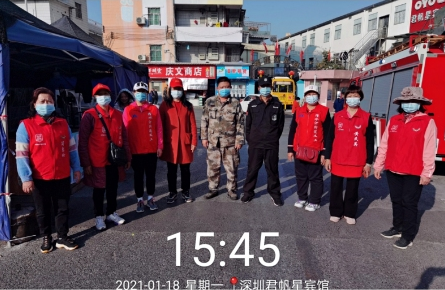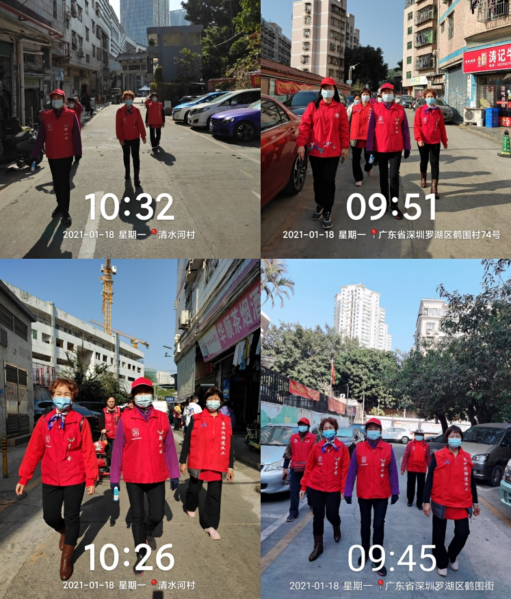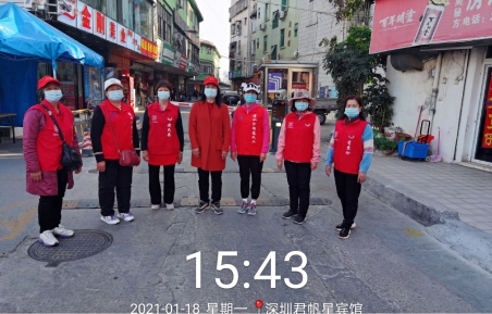 1月16日至18日,草埔西社区党委副书记蓝远香同志带领老协志愿者在社区进行疫情常态化宣传。