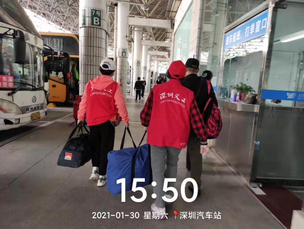 草埔西社区志愿者助力银湖汽车站春运活动,为返乡有需要的人搬行李,巴士站引导文明乘车,帮扶老年人幼儿上下车。为有需人员提供指引、咨询服务。传递爱心,分享快乐!