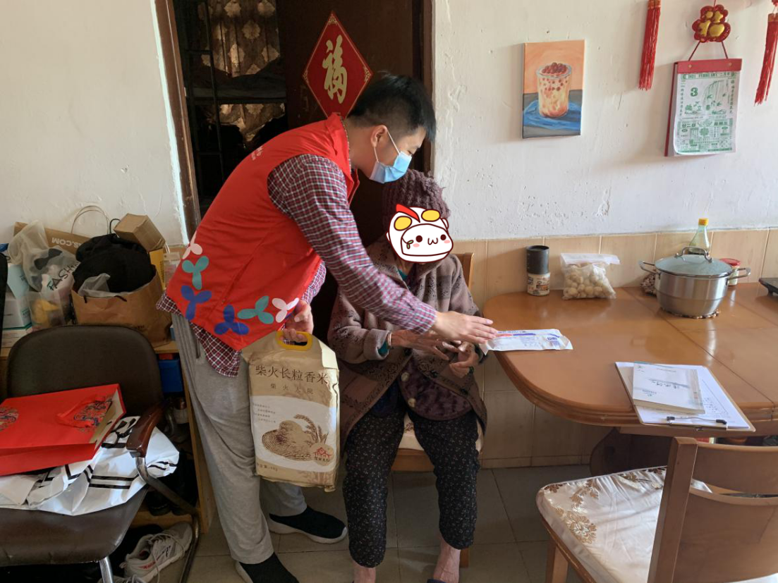 探访队伍深入长者家中,为长者送上大米、花生油以及口罩等生活用品,工作人员详细了解每一位老人的需求并做好建档记录,送上祝福的同时不忘叮嘱老人注意保重身体,外出戴好口罩。