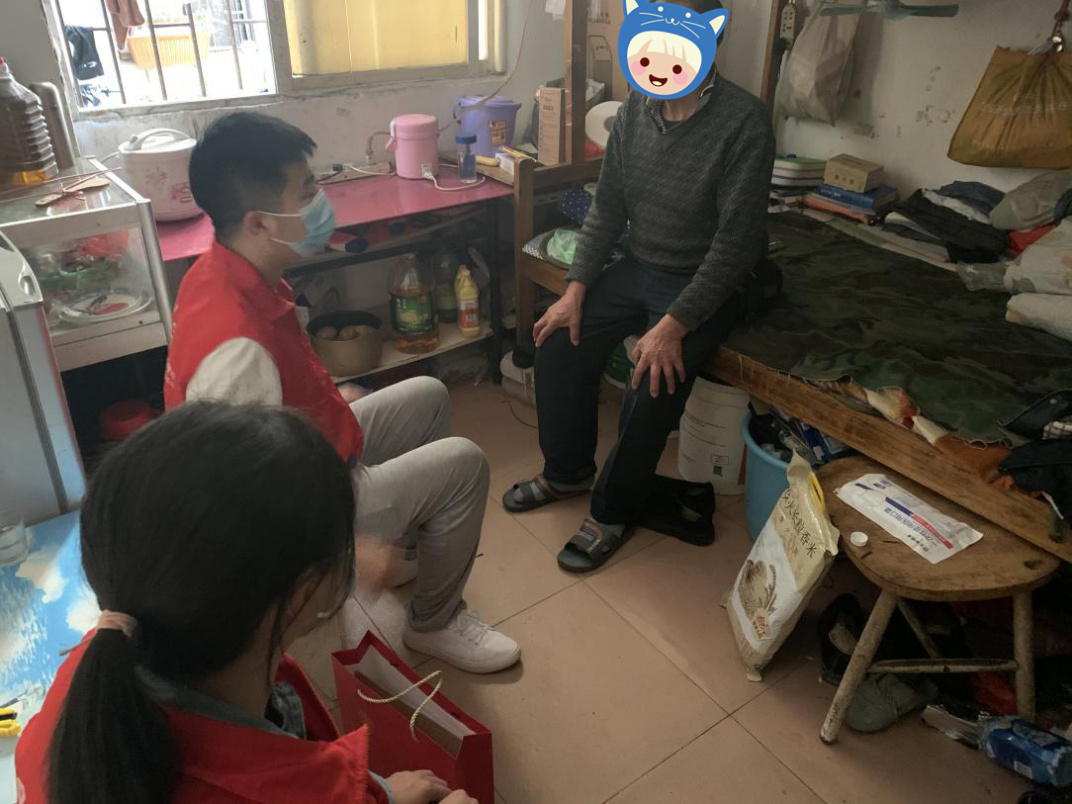 在慰问过程中社工了解到72岁的熊叔叔独自居住在阴冷潮湿的地下室,多年前因伤截肢丧失了劳动能力,现依靠捡废品维持生活,社工详细了解熊叔叔的身体情况和家庭情况、生活困难原因以及需要进一步帮助的地方,并了解现有的资源信息,为后续提供专业服务做好详细记录。