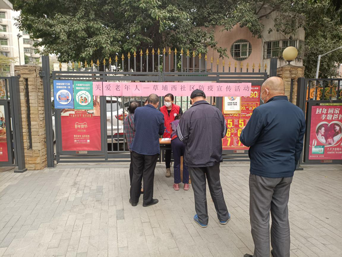 春节的脚步越来越近,假期也日益临近。为深入贯彻落实防疫工作精神和要求,全面做好春节假期疫情防控工作,2月9日下午,草埔西社区党群服务中心开展关爱老年人—草埔西社区防疫宣传活动,为社区长者发放防疫小册子和口罩物资。