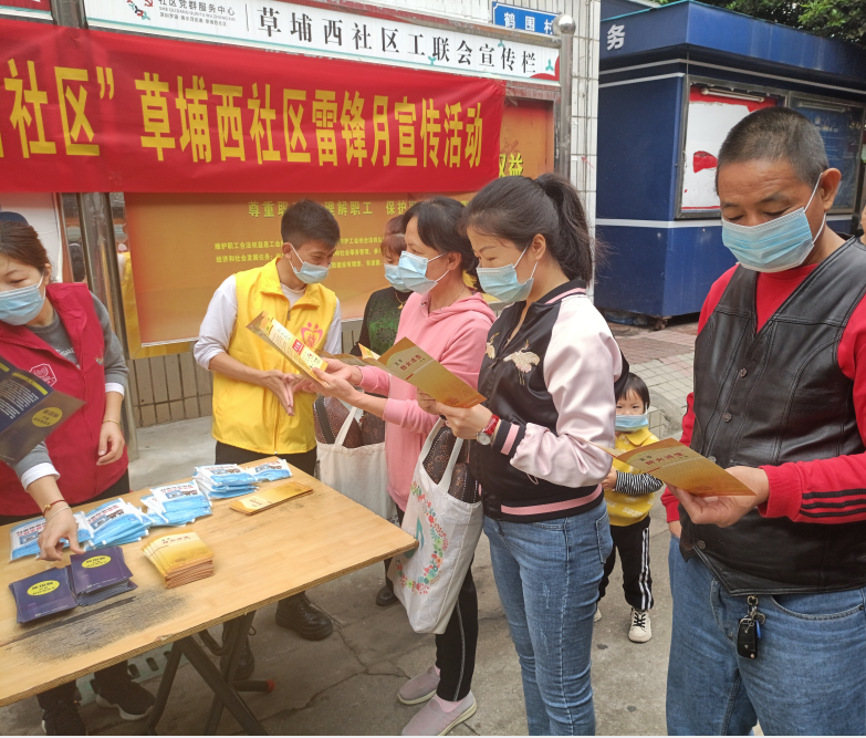 3月5日的雷锋纪念日草埔西开社区开展“弘扬雷锋精神,构建和谐社区”雷锋月宣传活动。