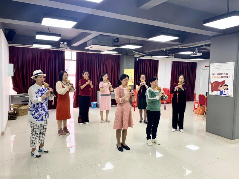 课堂上老师耐心的带领学员们演奏并排练葫芦丝曲谱《月光下的凤尾竹》,丰富了社区居民的文化生活。