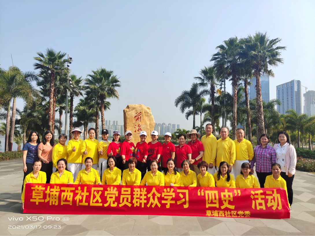 为庆祝建党100周年,深圳市罗湖区清水河街道草埔西社区党委,在3月17日上午,带领社区30余位党员来到前海,开展学“四史”活动。