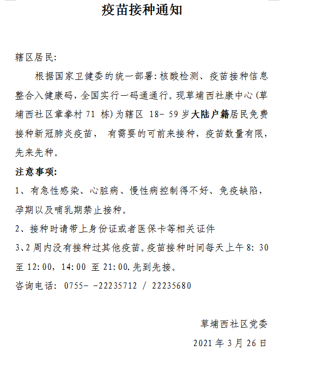 好消息:疫苗接种通知