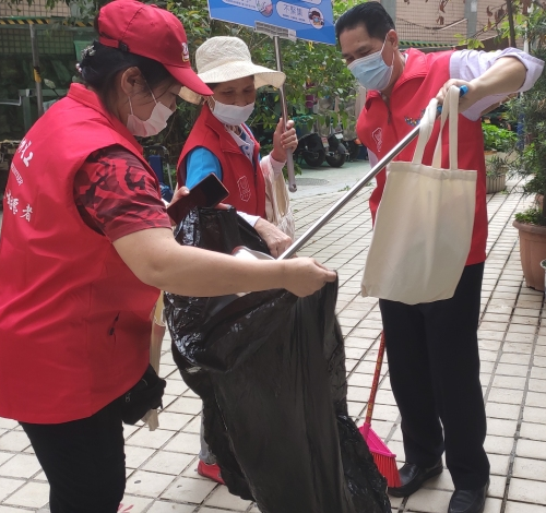 草埔西社区志愿者参加爱国卫生月宣传活动