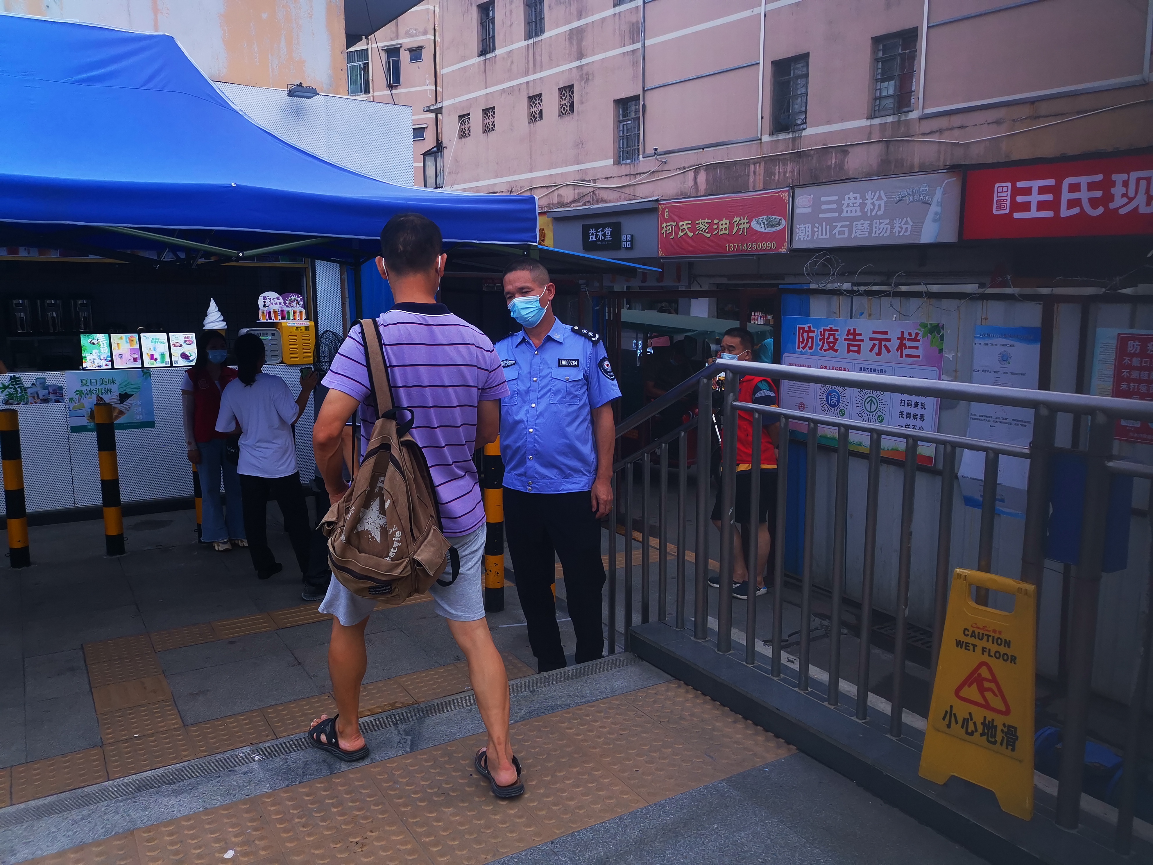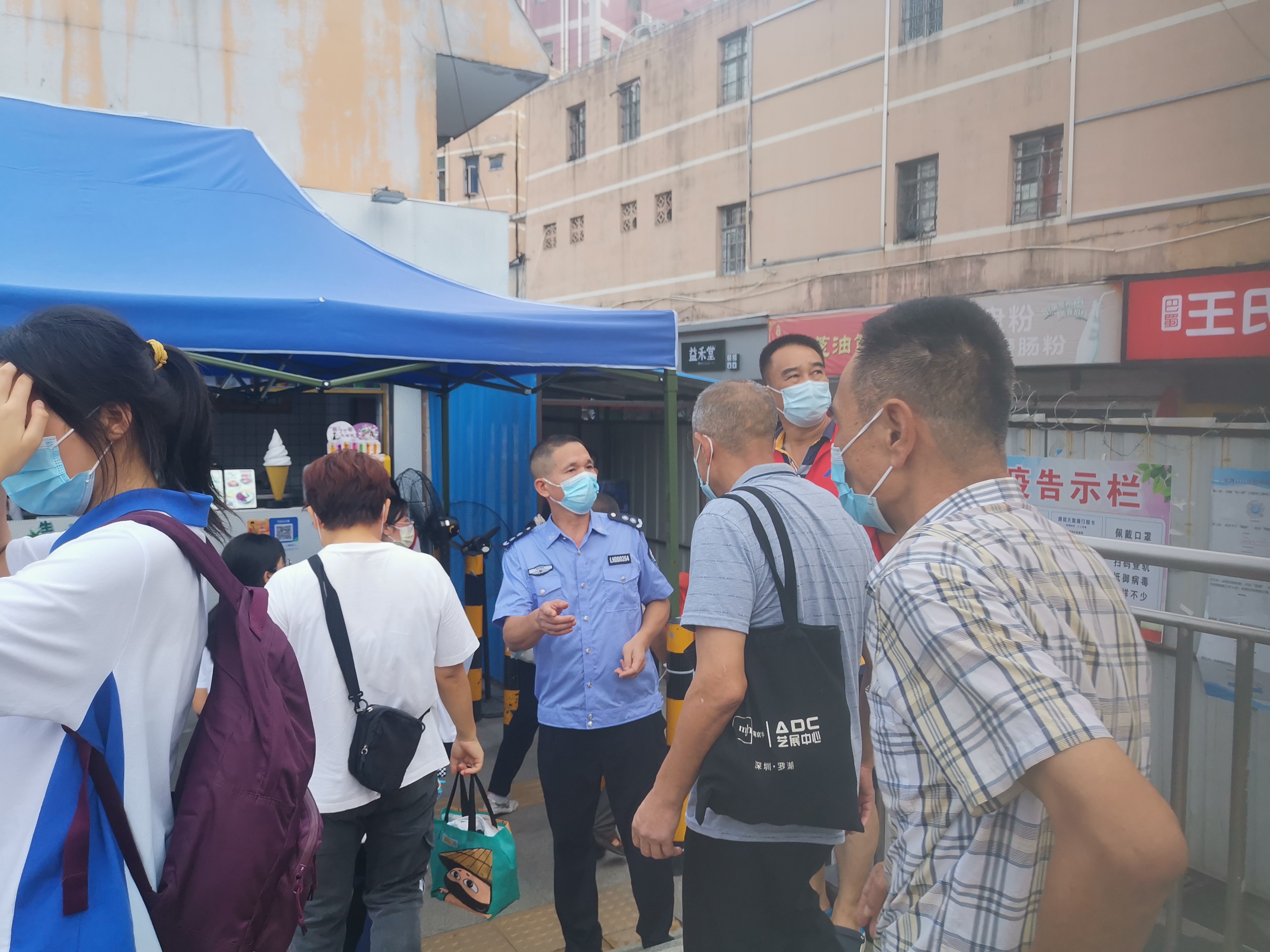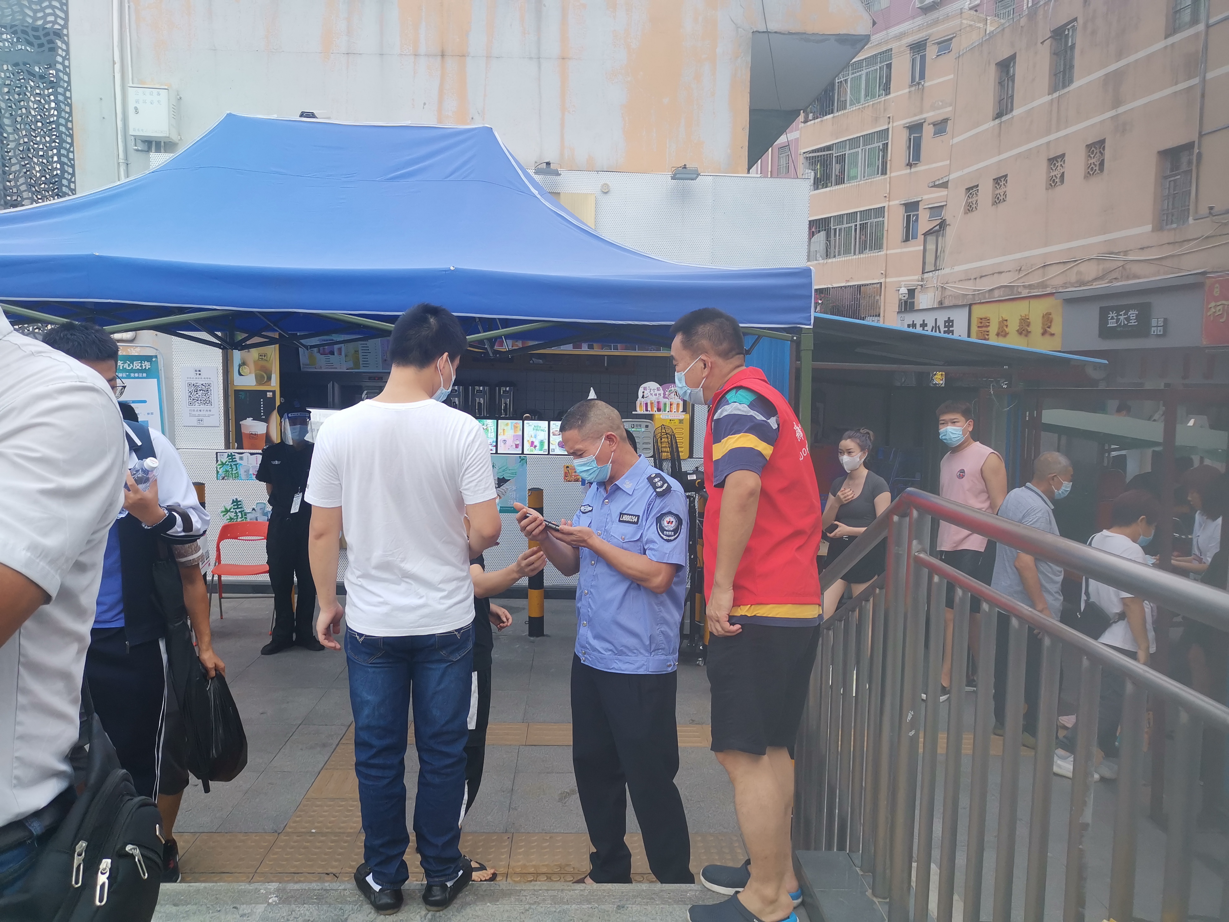 6月26日草埔西社区清水河地铁卡点人员查看居民疫苗接种情况