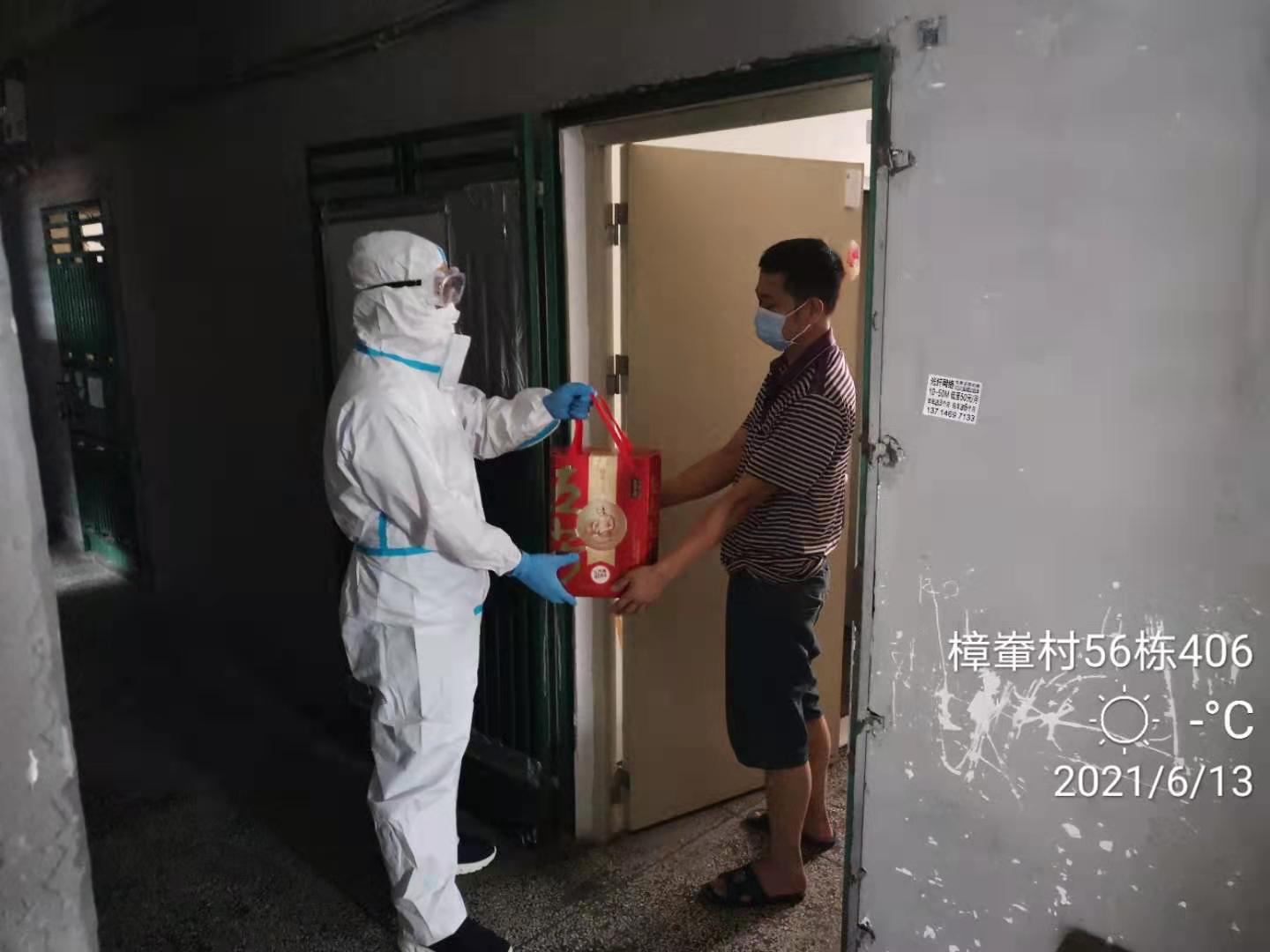 草埔西社区再次为隔离人员送上端午粽子