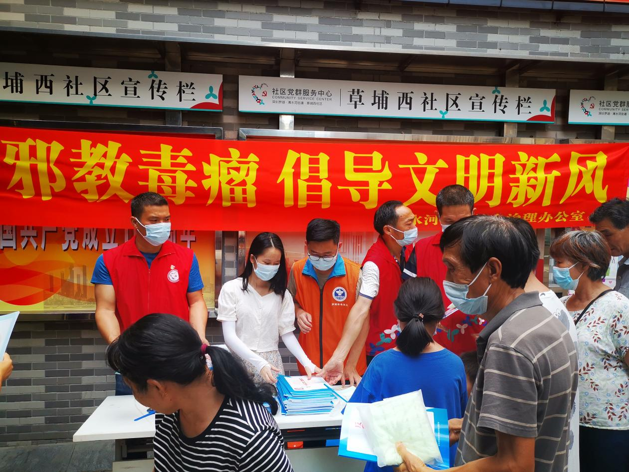7月14日下午,清水河街道综合治理办公室的工作人员与社区工作站的工作人员一起,走进社区,发放“铲除邪教毒瘤 倡导文明新风”的宣传手册、小礼品等,倡导大家崇尚科学,抵制邪教,守护个人小家、保卫祖国大家。