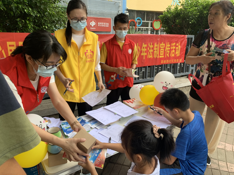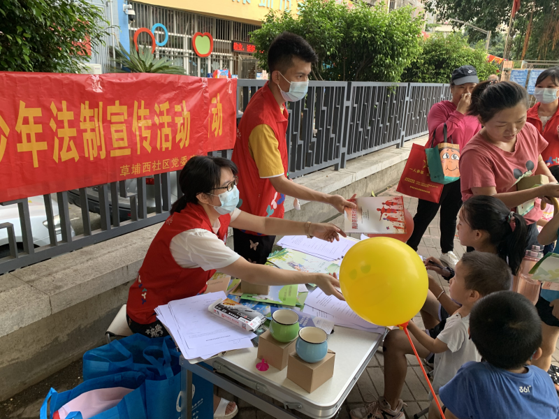为进一步加强社区青少年法制安全宣传教育,7月26日草埔西社区社工在金祥花园广场开展草埔西社区暑期安全教育——青少年法制宣传活动,此次活动吸引社区居民踊跃参与,共分发了《青少年法制教育读本》20套书籍和100份宣传手册。