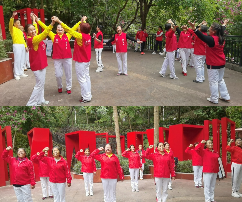12月31日,冬日融融、阳光和煦,草埔西社区老协会员们前往红岗公园进行欢天喜地跨年健步行活动,活动中结伴同行,活动中拉家常、谈近况,忆往昔、话晚年,个个精神抖擞、兴致盎然,还在空地上进行了文艺展演,有歌唱《我和我的祖国》、《最美的个唱给妈妈》,《没有共产党就没有新中国》、手语舞《一起走》,充分展示了乐观向上的精神风貌。