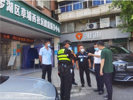 7月23日上午,清水河街道党工委书记魏刚和党政综合办副主任曾广武一行,在社区党委书记邓新锋陪同下,深入草埔西社区检查社区疫情防控工作现况。
