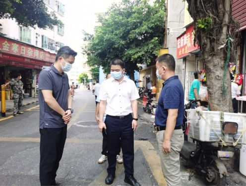 7月28日下午,罗湖区常务副区长左金平到清水河街道草埔西社区走访视察城中村文明创建、疫情防控、安全生产等工作情况,街道党工委委员、应急办主任戴林海,街道办事处副主任、综合行政执法办公室主任刘思源,草埔西社区党委书记邓新锋陪同检查。7