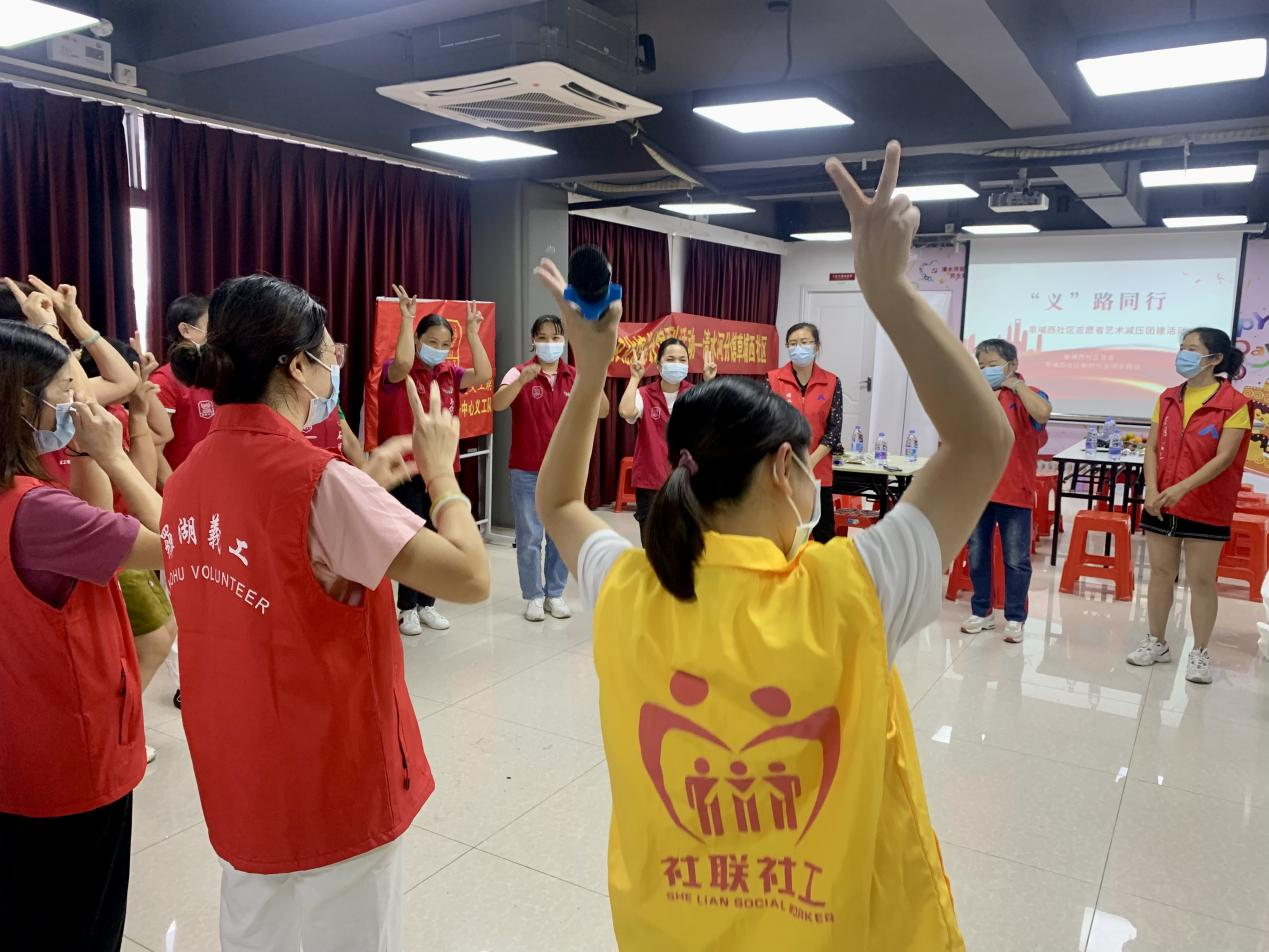 据了解,草埔西社区的志愿者团队是疫情防控的主力军,也是社会治理的重要力量,他们在助人自助的同时也会面临着一些来自家庭、社会、服务对象的压力,通过本次艺术减压沙龙能够有效的帮助志愿者们舒缓压力。