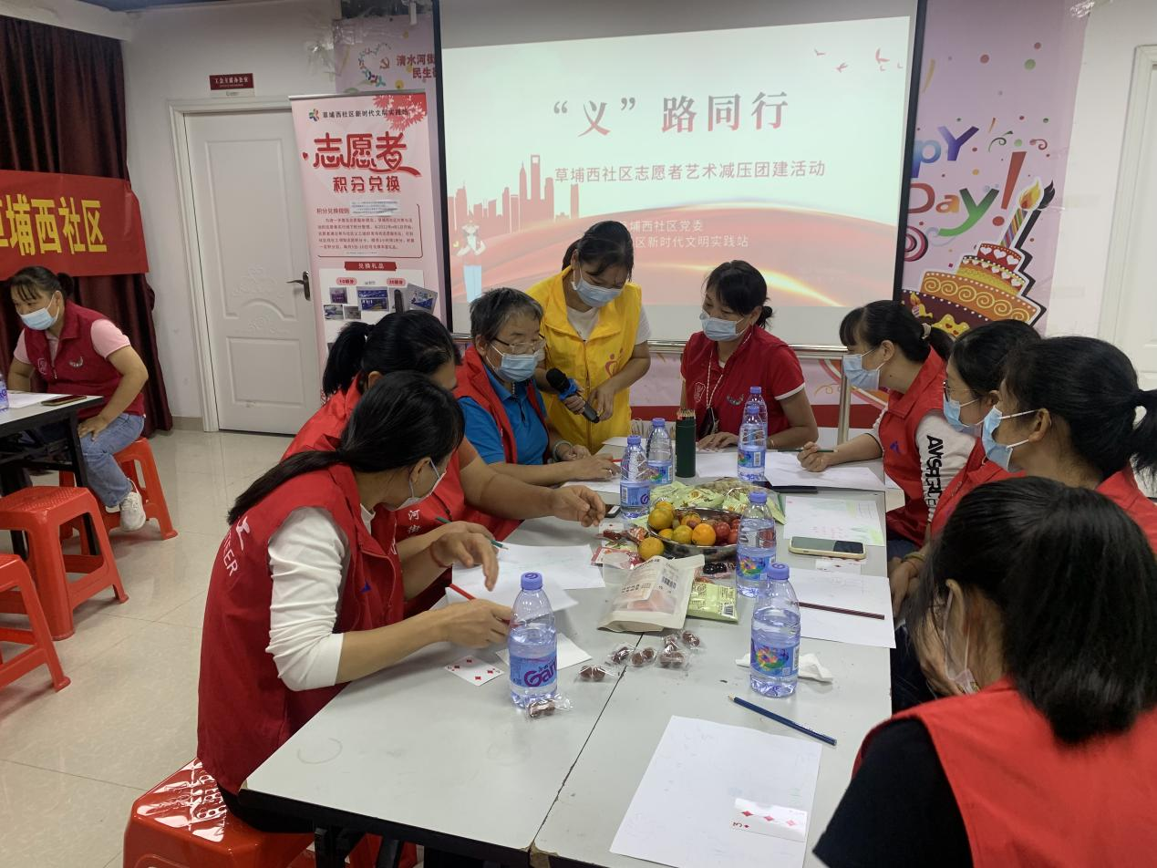 为进一步增进志愿团队间的交流和互动,提高团队凝聚力和归属感,营造良好的志愿队伍氛围,激发志愿者的积极性和参与志愿服务的热情。2022年11月16日下午,在草埔西社区党委支持下,草埔西社区新时代文明实践站开展了“义路同行”草埔西社区志愿者艺术减压团建活动。