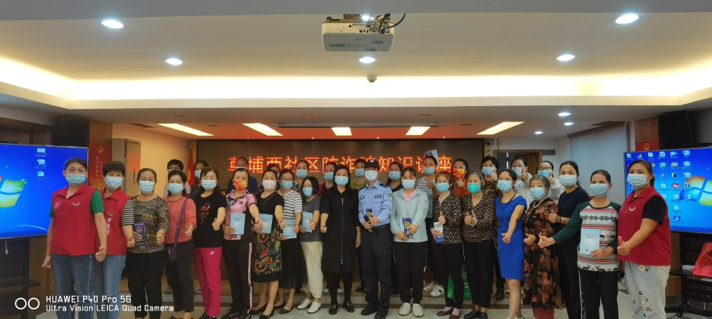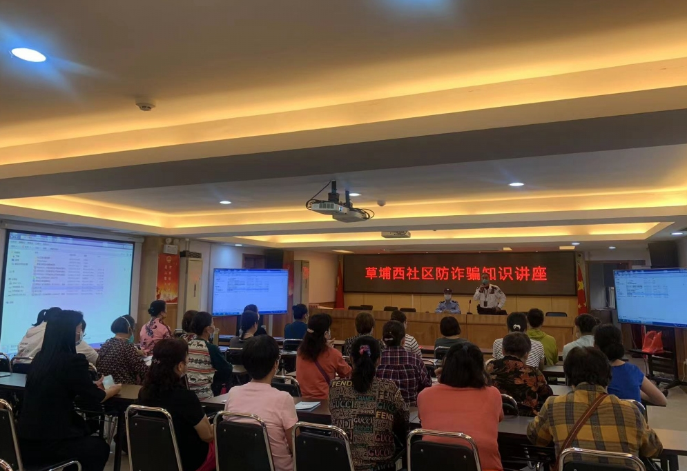 为了进一步提高社区居民防诈骗意识,持续降低诈骗案件发案率,清水河派出所、草埔西社区党委、草埔西社区居委会、草埔西社区警务室联合开展草埔西防诈骗诈骗知识讲座。草埔西居委会组织了辖区内的企业单位财务人员、居民、老协成员参加。