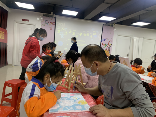 童心绘太空,草埔西社区亲子互动油画体验活动