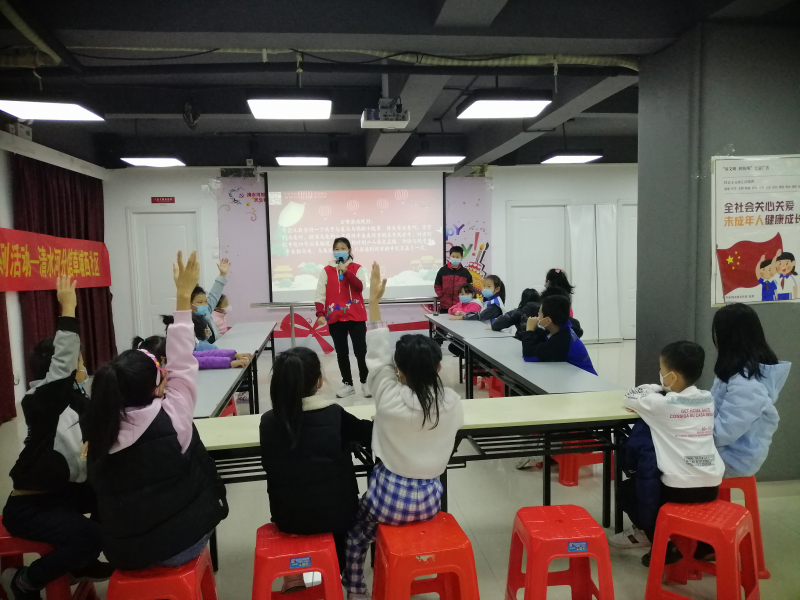 活动第一阶段,同学们依次在“心愿盒”里写下对2023的美好祝愿。之后,社工带领同学们进行互动游戏“乌鸦和乌龟” 和“你比划,我来猜”,同学们迅速参与到游戏中,现场气氛紧张而热烈,大家玩得不亦乐乎。另外,通过一个月的阅读打卡,评选出8名12月份的阅读之星。社工给这些同学发放小礼品鼓励他们继续坚持阅读。活动第二阶段,社工通过PPT 和视频,让同学们了解元旦的来历,传说故事和南北方习俗的不同,同学们听得津津有味。之后,社工详细讲解灯笼的DIY制作流程∶插销、穿绳、成型。孩子们跃跃欲试,在社工说可以开始制作时,大家迫不及待地拿起DIY材料,按照社工教的步骤一步步完成,在志愿者的帮助指导下,孩子们完成灯笼的制作,当看到一个个漂亮的灯笼在自己的手中亮灯时,大家都异常兴奋和自豪,纷纷拍照留恋。