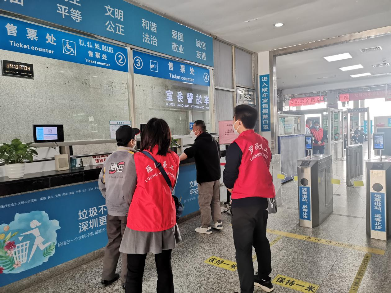 2023年1月7日,在草埔西党委的领导下,草埔西社区党群服务中心义工队在银湖汽车站为返乡旅客提供指引、搬行李、送温暖等志愿服务。