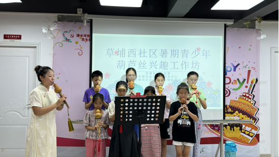 据悉,本次暑期兴趣课堂是在草埔西社区党委的支持下,由草埔西社区新时代文明实践站社工联合社区葫芦丝队开展的青少年兴趣活动。旨在弘扬传统民乐,搭建学习平台,提升社区综合文化实力。