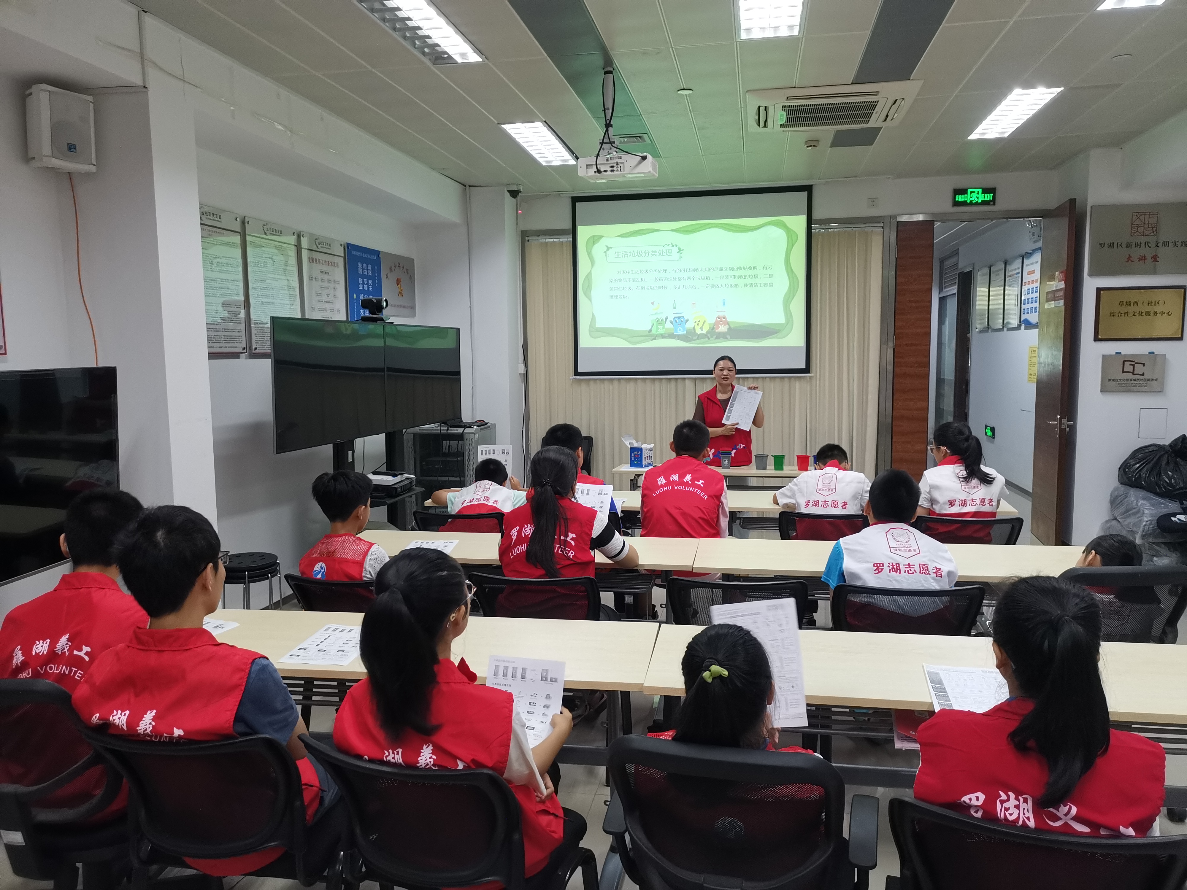 首先,社工向志愿者科普“我们的地球”、“污染的危害”、“保护环境的措施”等环保知识,讲解低碳生活的重要性,以及如何在生活中践行绿色生活。社工还着重讲解了垃圾分类的常识,包括可回收物、有害垃圾、厨余垃圾和其他垃圾的分类标准,以及正确分类投放的方法。为让大家更加直观地了解垃圾分类的实际意义和效果。社工在现场进行垃圾分类互动小游戏,让志愿者们亲身体验垃圾分类的过程,从而加深对垃圾分类的认识和理解。