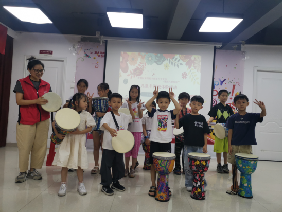 2024年7月10日下午,草埔西社区党委联合草埔西社区党群服务中心驻点社工开展儿童非洲鼓体验活动。在短短1小时内,12名小朋友沉浸在非洲鼓的韵律中,共同编织了一段难忘的音乐记忆。
